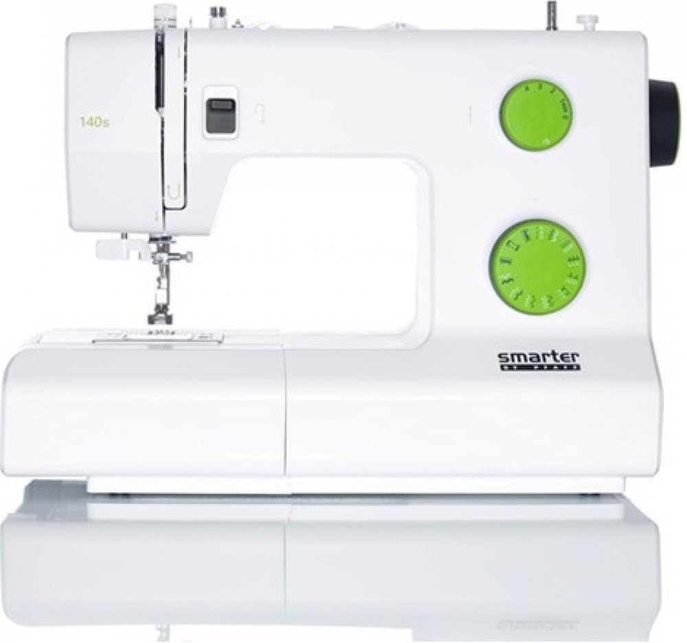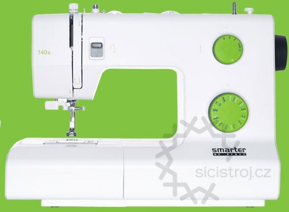 Základem je robustní kovová konstrukce. Zelený horní knoflík slouží k nastavení délky stehu, spodní zelený knoflík je na volbu programů (celkem 21). Na horní straně jsou dva bílé voliče, levým nastavíte napětí horní nitě, pravým šířku stehu. Zpátkovací páka je umístěna nad pracovní plochou stroje. Patku stroje je možno zvednout do střední a vysoké polohy, takže je možné vkládání i vysoké vrstvy šitého materiálu. Stroj má zabudovaný jednoduchý navlékač nitě, který umožňuje snadnější navlékání nitě do jehly. Osvětlení je LED diodou, takže odpadá praskání a výměna žárovek. Pokud zapomenete nůžky, stroj má ne levé straně čelního krytu zabudován ořez nitě.