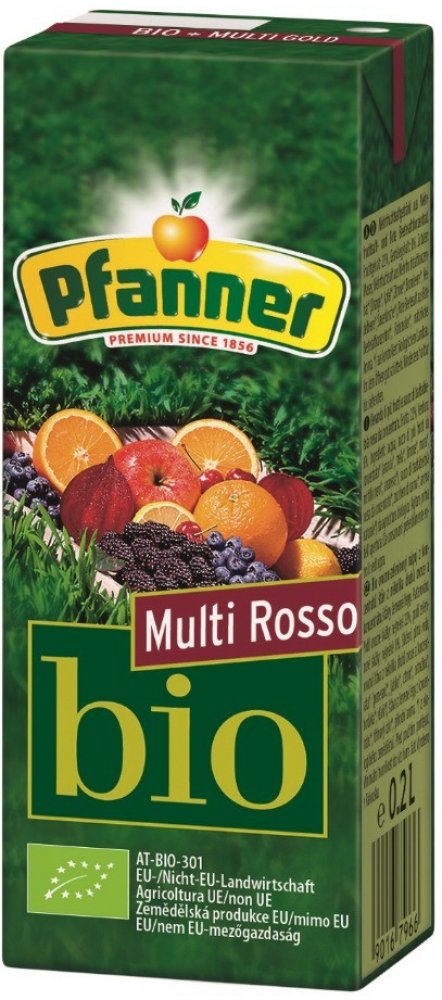 PFANNER Multi Rosso BIO pochází z organicky pěstovaných surovin, jako jsou pomeranče a citrony dozrávající na slunci spolu s jablky, ostružinami, borůvkami, višněmi a červenou řepou.