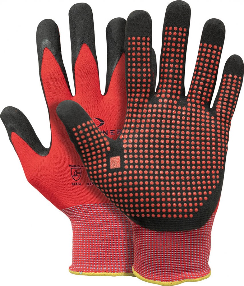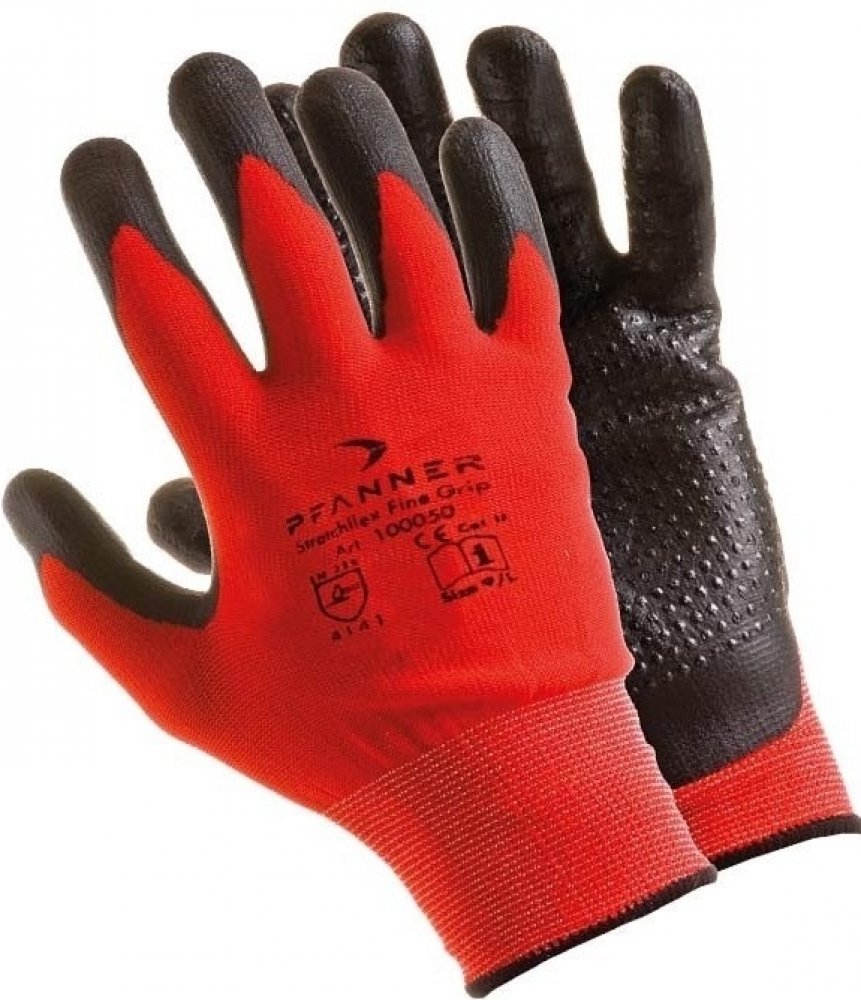 Pfanner STRETCHFLEX FINE GRIP rukavice Pfanner STRETCHFLEX FINE GRIP jsou nylonové pletené rukavice s olej-odpuzující povrchovou úpravou. Hřbet rukavice je ze stretch-flex materiálu, díky němuž jsou velmi flexibilní a přesně přiléhající. Textura na dlaních tyto rukavice dělá přilnavými a umožňuje naprostou kontrolu úchopu. Parametry produktu Pfanner STRETCHFLEX FINE GRIP rukavice: Velikost: M(8), L(9), XL(10), XXL(11) Barva: červená/černá nebo šedá/černá (dle aktuální dostupnosti) Nevíte jakou velikost rukavic vybrat? V horní záložce Dokumenty ke stažení naleznete tabulku velikostí.