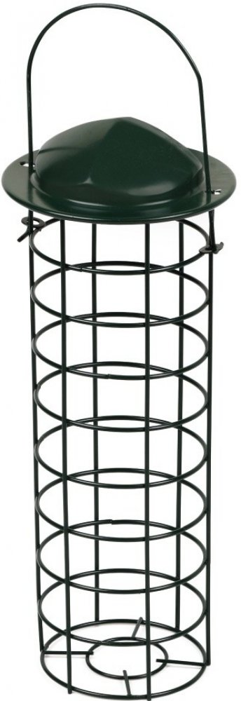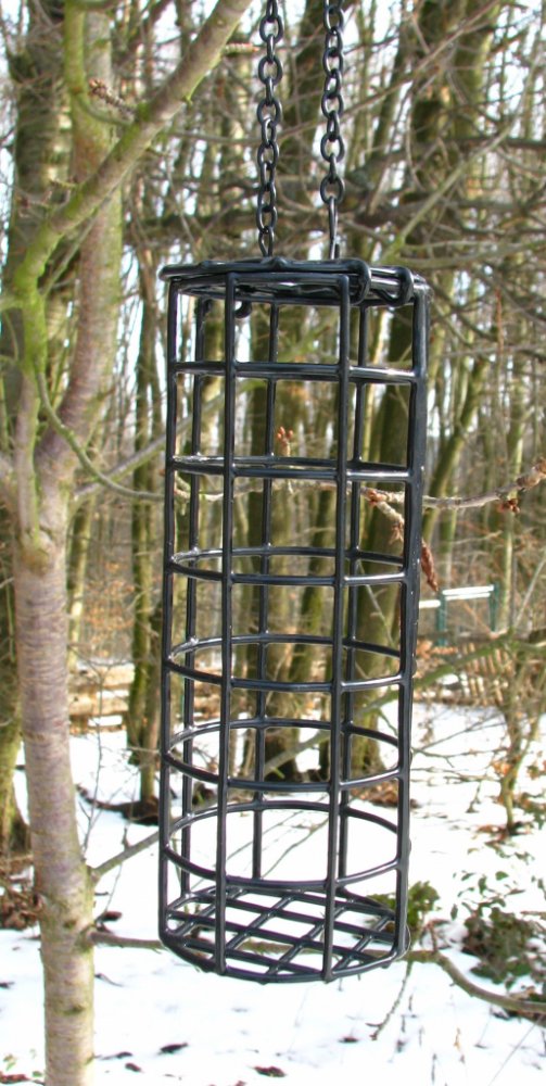 Kovové krmítko na lojové koule pro ptáky Krmítko na lojové koule bez sítěk se snadno doplňuje. Kovová konstrukce je velmi trvanlivá a je opatřena voděodolným nátěrem. S řetízkem na zavěšení na větev, skobu nebo hřebík. Lojové koule v krmítku na fotce nejsou součástí výrobku, lze je u nás zakoupit samostatně ve více variantách. Krmítko na lojové koule bez sítěk (do velikosti cca 100 g každá koule) se snadno se doplňuje. Jeho kovová konstrukce s voděodolným nátěrem je velmi trvanlivá. Krmítko má řetízek pro zavěšení na větev, skobu nebo hřebík.Do krmítka se vejdou cca 3 koule. Koule nejsou součástí výrobku.Plastové síťky, ve kterých jsou koule běžně prodávány i věšeny, představují značné nebezpečí pro ptáky, divoká zvířata, ale i pro psy. Ti mohou síťku nebo její část spolknout a často pak dochází k ucpání jejich střev, což může končit úhynem zvířete. Proto je daleko lepší síťky nepoužívat a kouli před zavěšením rozbalit.