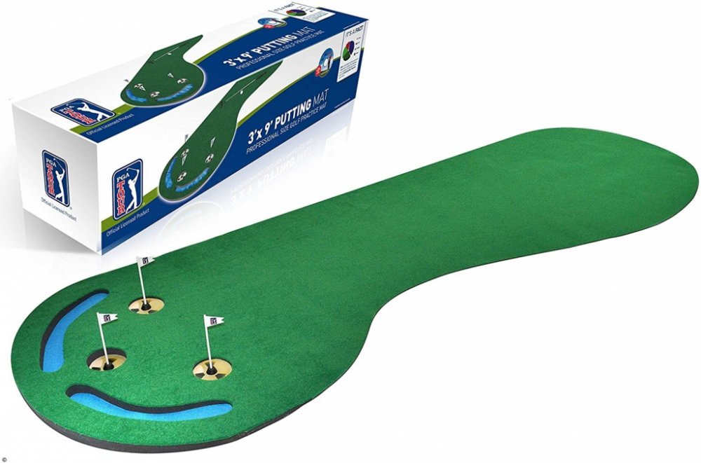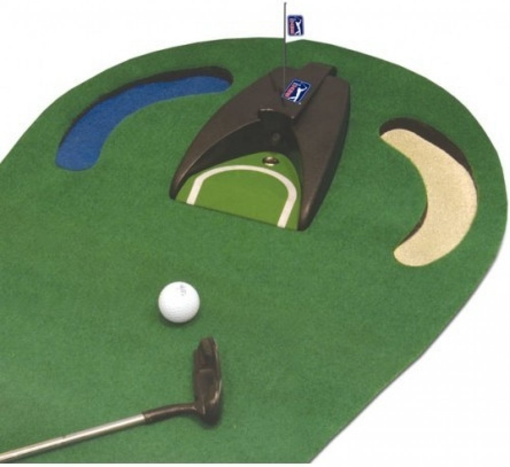 PGA Tour 91cm x 274 cm Putting Mat Dělá Vám Vaše puttování problém? Pak cvičení dělá mistra s realistickým PGA TOUR 91cm x 274 cm Putting Mat trávníkem. Je vyroben z luxusního umělého trávníku a nabízí realistické pocity. Představuje 3 jamky a 2 vodní překážky, díky kterým máte možnost procvičovat svoje údery z více pozic.