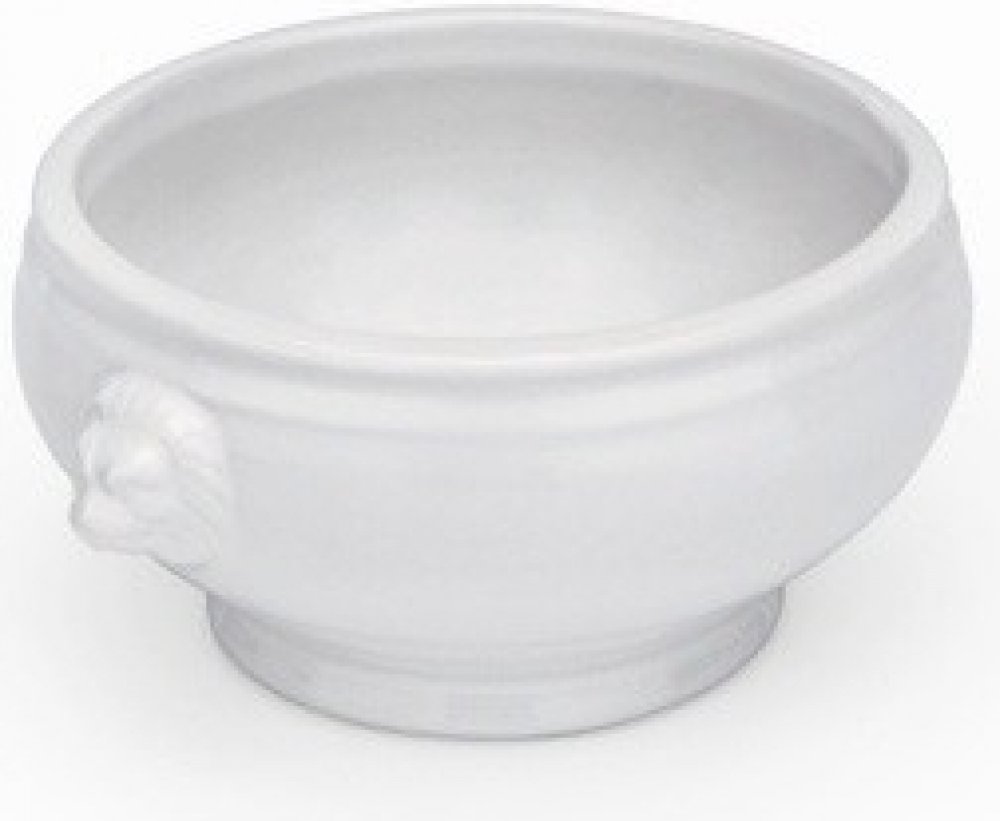 Miska na polévku je vyrobena z hotelového silnostěnného porcelánu. Zdobená polévková mísa dvěmi hlavami lva. Barva bílá.