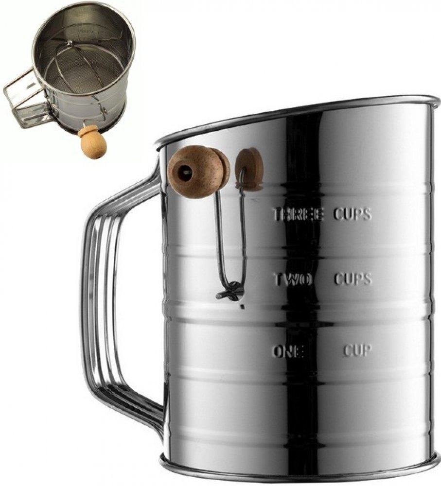 - mechanická cukřenka se sítem, kterou je možné používat také jako sítko na mouku, cukr, kakao