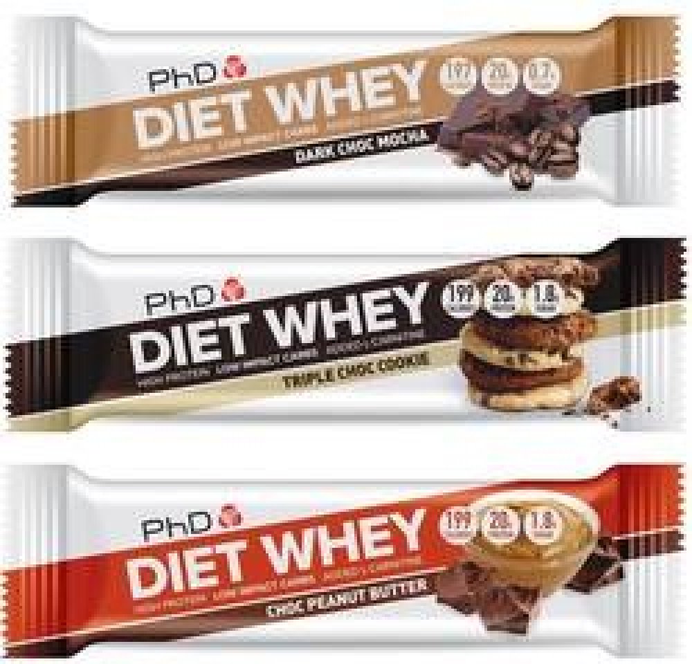 Proteinová tyčinka Diet Whey je tu v novém! Má výrazně zlepšenou chuť a konzistenci. Celkem nabízí 20g proteinu, je to ideální proteinová svačinka pro kteroukoli denní dobu! Diet Whey Bar nyní obsahuje lahodnou vrstvu karamelu procházející středem stejně jako proteinové křupinky, což jí dodává výtečnou chuť a křupavou konzistenci. Vybrat si můžete z několika příchutí – dark choc mocha, triple choc cookie, chocolate peanut butter, salted caramel, birthday cake nebo double choc brownie.