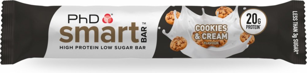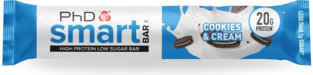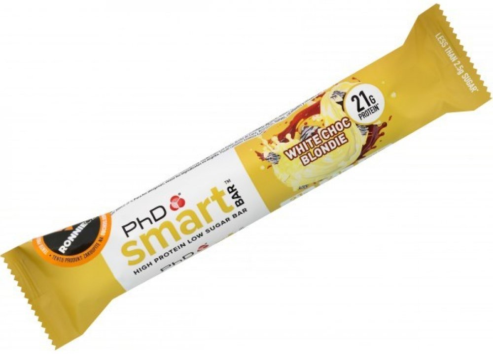 PhD Smart Bar™ je vynikající lowcarb proteinová tyčinka se 3 vrstvami, které jsou každá o sama sobě skvělé, dohromady však tvoří neodolatelnou kombinaci. Tyčinka neobsahuje žádný palmový olej, ale zato se pyšní 20 g bílkovin a obsahem cukru nižším než dva gramy. PhD Smart Bar™ je zkrátka sladká, proteinová a inteligentní cesta za doplněním denního příjmu bílkovin bez zbytečného cukru.