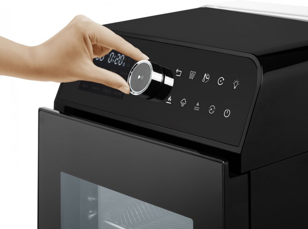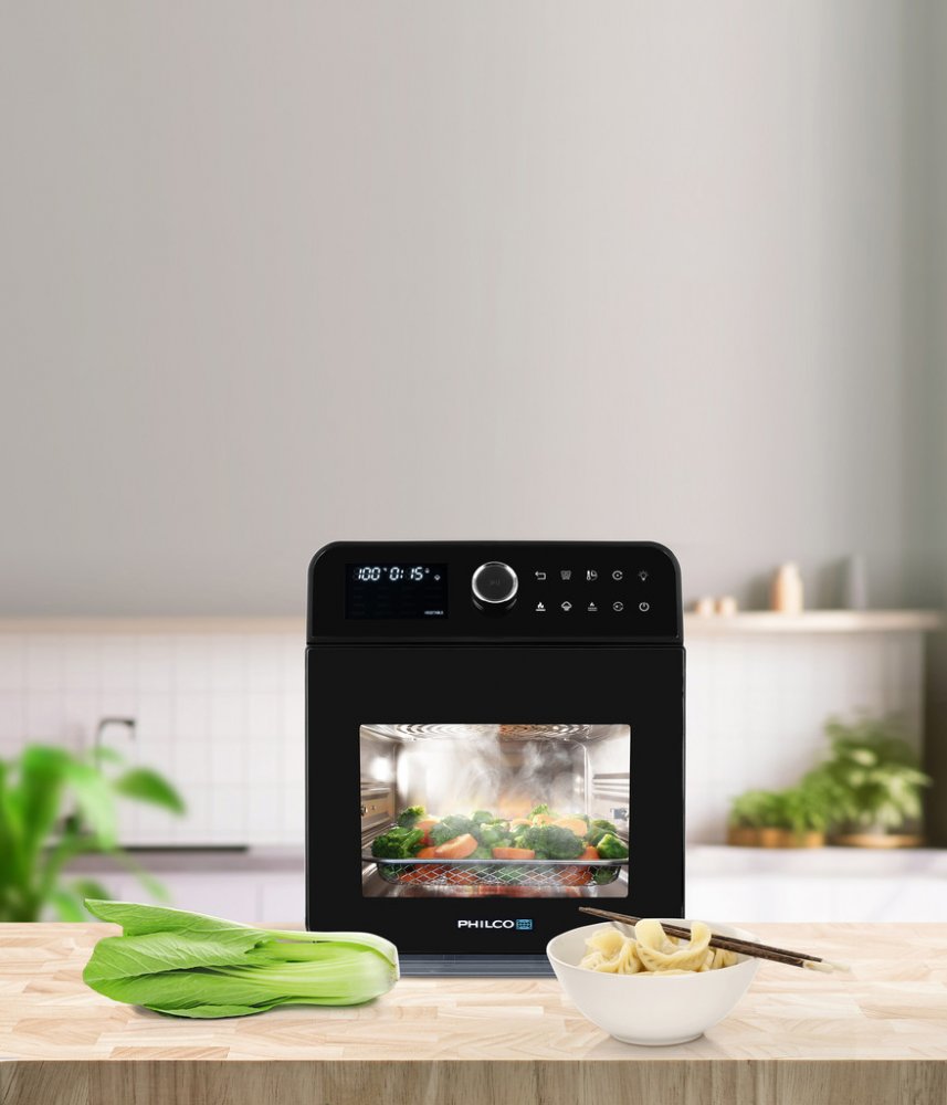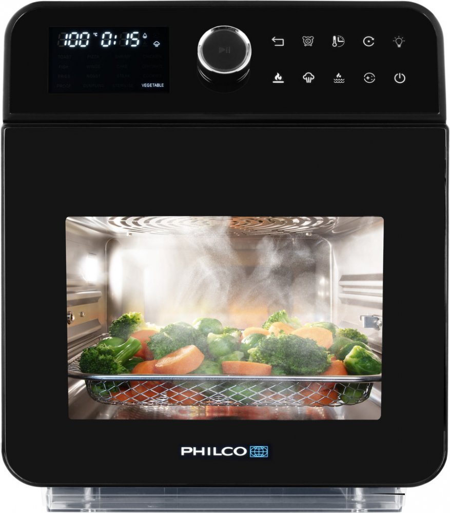 Horkovzdušná fritéza Philco PHAO 1015 s funkcí páry, která vám umožní snadno a zdravě připravit velké množství pokrmů. Díky kombinaci horkého vzduchu a páry připravíte rychle a úsporně skvělé pokrmy a navíc bez přebytečného tuku. Fritéza nahrazuje několik spotřebičů a šetří nejen váš čas, ale i místo v kuchyni. Kapacita 15 litrů, 16 přednastavených programů, intuitivním dotykový displej, otočný o...