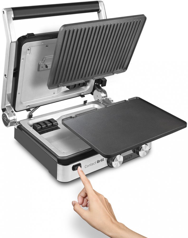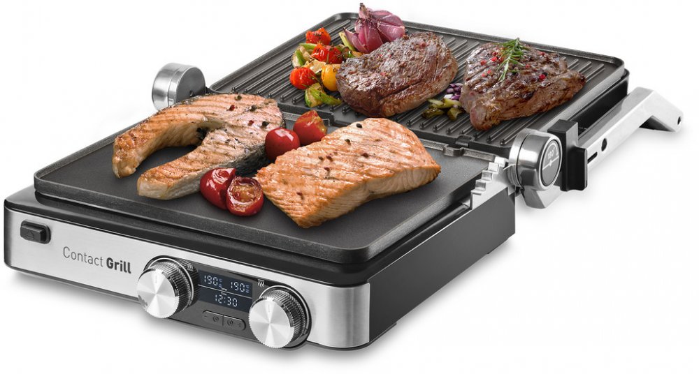 Opravdové grilování po celý rok s grilem Philco PHGR7000F. Budete zbožňovat krásné grilované linky na mase a zamilujete se do jednoduchosti celé přípravy i následném úklidu. Díky topnému tělesu přímo na grilovací desce využijete maximum z vytvořeného tepla a budete skutečně grilovat a to i pořádné fláky masa. Tento gril je možné používat buď v poloze kontaktního grilu nebo barbecue při rozložení, kdy získáte větší grilovací plochu. Navíc má každá deska nezávislé ovládání teploty a proto můžete na jedné grilovat a na druhé jen jídlo přihřívat.