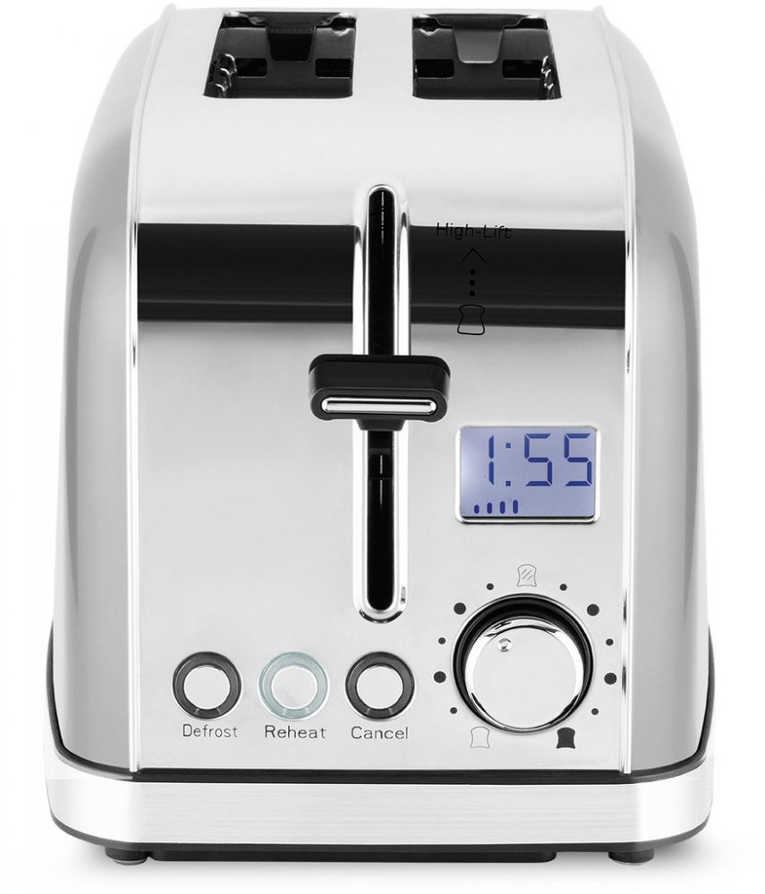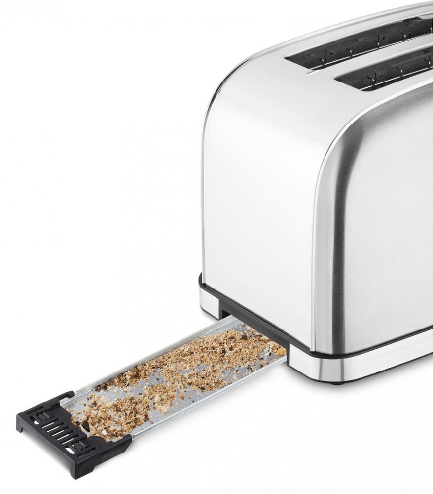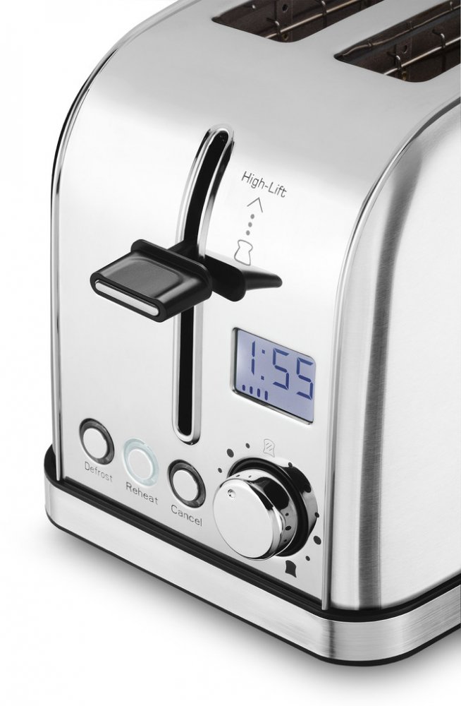 závislosti na tom jak je široký. S podsvíceným displejem budete vždy vědět, kolik času zbývá do ukončení procesu. Potěší vás také funkce OHŘÁTÍ, ROZMRAZENÍ nebo PŘERUŠENÍ. Vysoký zdvih je pohodlný pro jednoduché a bezpečné vyndání toustu. Tácek na drobky vám pak pomůže udržet toustovač snadno čistý.