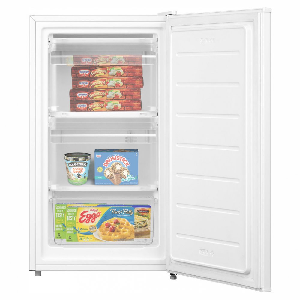 Dveře mrazáku se dají otočit. Rozevřete je jak zprava, tak zleva. Po jejich otevření tedy nehrozí poničení zdi, k níž mrazničku můžete bez obav umístit. Uvnitř spotřebiče se nachází celkem 3 zásuvky vhodné pro uložení vašich oblíbených potravin. Získáte nad nimi přehled a vždy budete vědět, jaký šuplík otevřít.