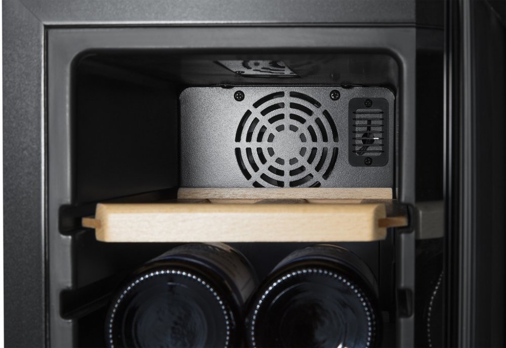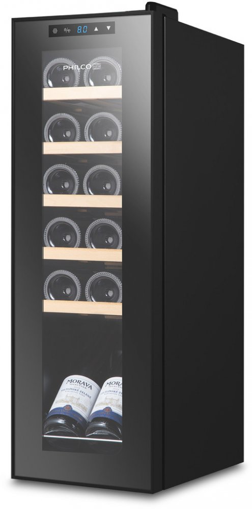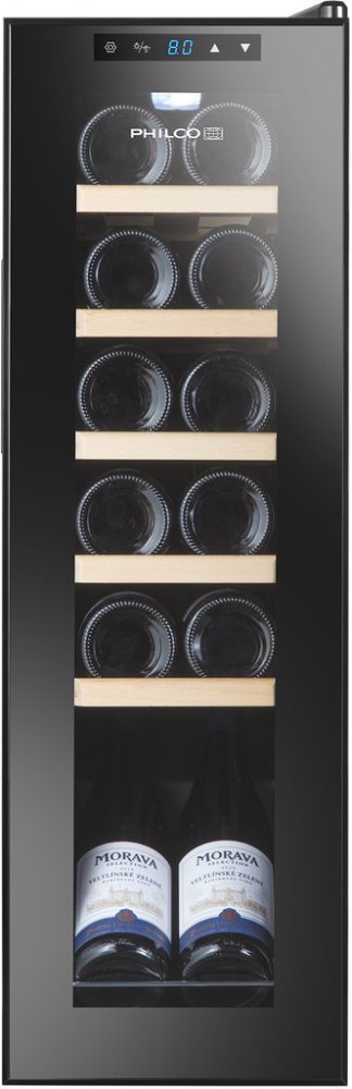 Model Philco PW12KF je jednozónová kompresorová vinotéka pro 12 lahví, která uchová vaše vína v té nejlepší kvalitě při vámi nastavené teplotě. Obsahuje odolné tónované sklo dveří proti poškrábání. Víno je uchováno v bezpečí díky chladícímu kompresoru. Senzory automaticky vyhodnotí současné podmínky ve vinotéce a přizpůsobí je vašemu aktuálnímu nastavení. Tento model má optimální cirkulaci vzduchu...
