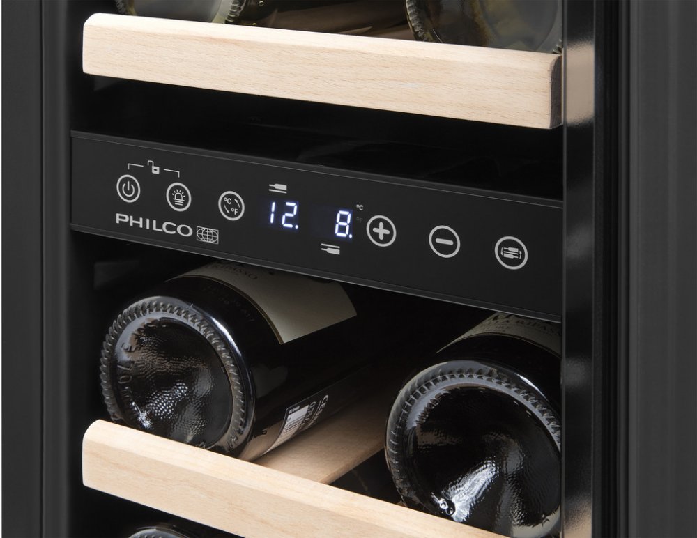Philco PW 17 GDFB na 17 lahví s kluznými výsuvnými policemi s bukového dřeva.