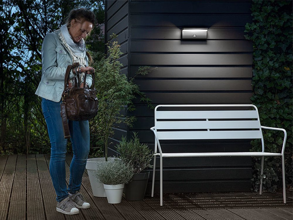 Nástěnné svítidlo BUSTAN je moderní antracitové venkovní svítidlo, které promění vaši zahradu v útulné místo. Lampa byla navržena pro pohodlí vašich očí - díky mléčné cloně dostáváme neoslnivé, příjemně rozptýlené světlo. I v noci bude vaše zahrada dýchat příjemnou intimní atmosférou. Svítidlo má integrovaný LED zdroj světla o výkonu 2x4,5W a bude fungovat s většinou regulátorů stmívání . Další výhodou je vestavěný pohybový senzor , který rozsvítí světlo, když je v okolí detekována aktivita. Bezpečné venkovní použití zajišťuje zvýšená odolnost na úrovni IP44 .