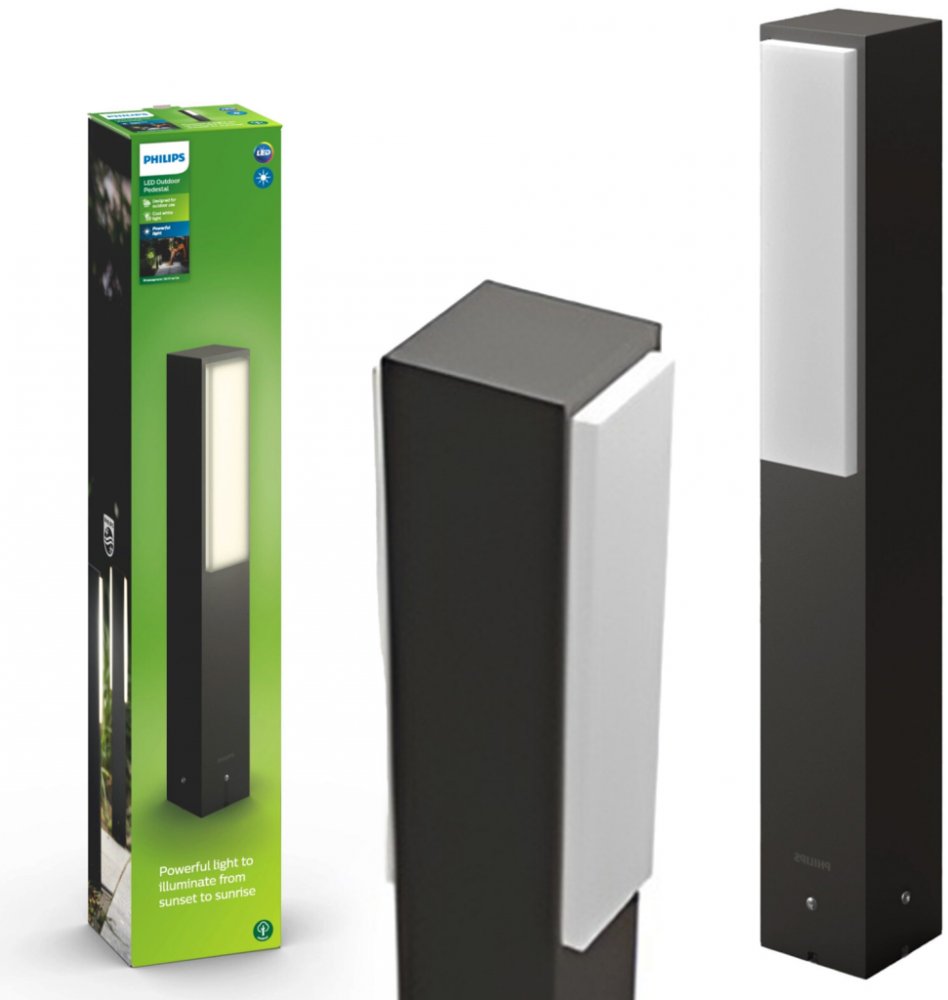 LED venkovní sloupek Menší minimalistický venkovní sloupek Stratosphere v moderní antracitové barvě dokonale osvítí cesty, cestičky a jiné otevřené prostory ve vaší zahradě, poskytuje obousměrné úsporné LED světlo. Kombinace tlakově litého hliníku a kvalitního plastu zaručí bezpečnost, trvanlivost a maximální odolnost vůči povětrnostním vlivům. Skrze plastové stínidlo září vysoce výkonné chladné bílé světlo, která vydává integrovaný LED zdroj. Svítidlo je kompatibilní se stmívačem (není součástí balení), můžete si nastavovat intenzitu osvětlení a vytvářet tak příjemnou atmosféru. Doplňte svou zahradu i dalšími členy této světelné rodiny Stratosphere, např. obousměrně svítící nástěnka, která vytváří na zdi hezké světelné efekty. napájení 220-240V integrovaný LED zdroj příkon 4,5W svítivost: 500 lm barva světla: 4000K - studená bílá IP44 vyrobeno z hliníku a plastu kompatibilní s nástěnným stmívačem (není součástí balení) výška 420 mm, šířka 60 mm energetická třída A+ Vysoce výkonná integrovaná LED dioda Svítidlo obsahuje integrovaný LED zdroj, který se zapíná okamžitě a umožňuje docílit optimálních světelných výkonů. Tato technologie představuje unikátní řešení společnosti Philips. Chladné bílé světlo Stupeň ochrany IP44 Produkt je chráněn proti stříkající vodě a je vhodný pro všeobecné venkovní použití. Kvalitní a odolný materiál Tlakově lití hliník a sklo zaručují maximální odolnost vůči povětrnostním vlivům. Energetická třída A+ Integrovaný LED zdroj ušetří až 90% elektrické energie.