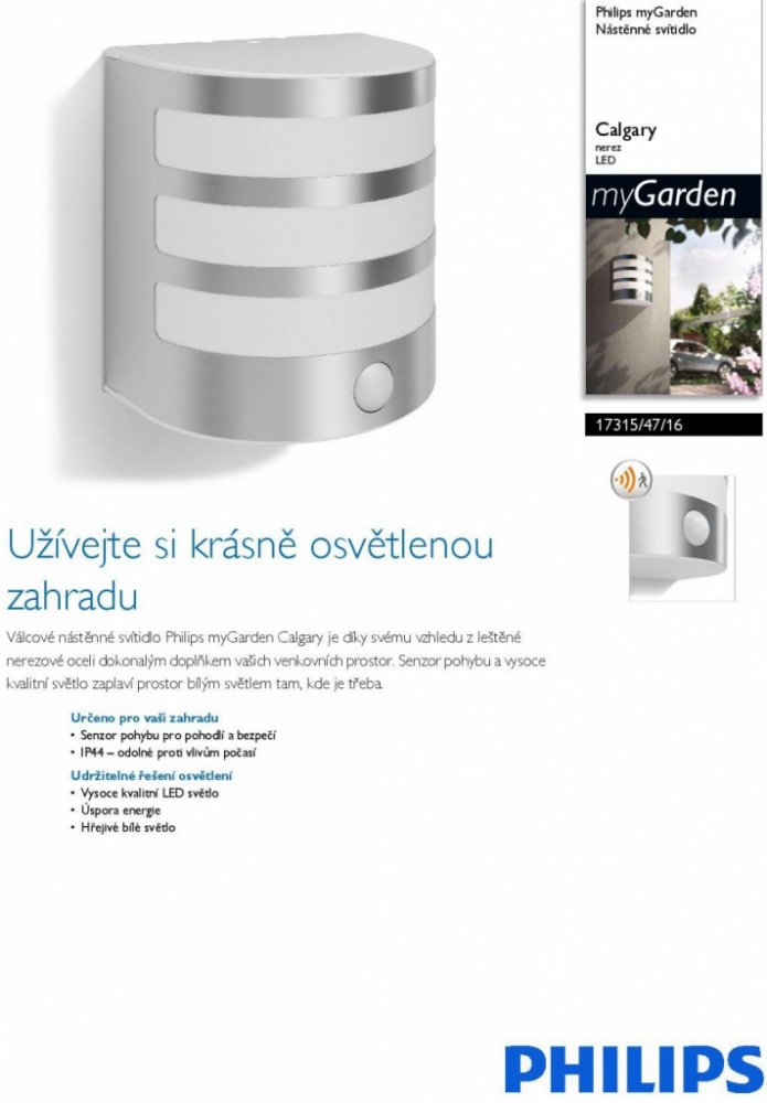 LED zahradní nástěnná lampa CALGARY IR myGarden 3,5W 2700K IP44 s pohybovým senzorem Silver PHILIPS