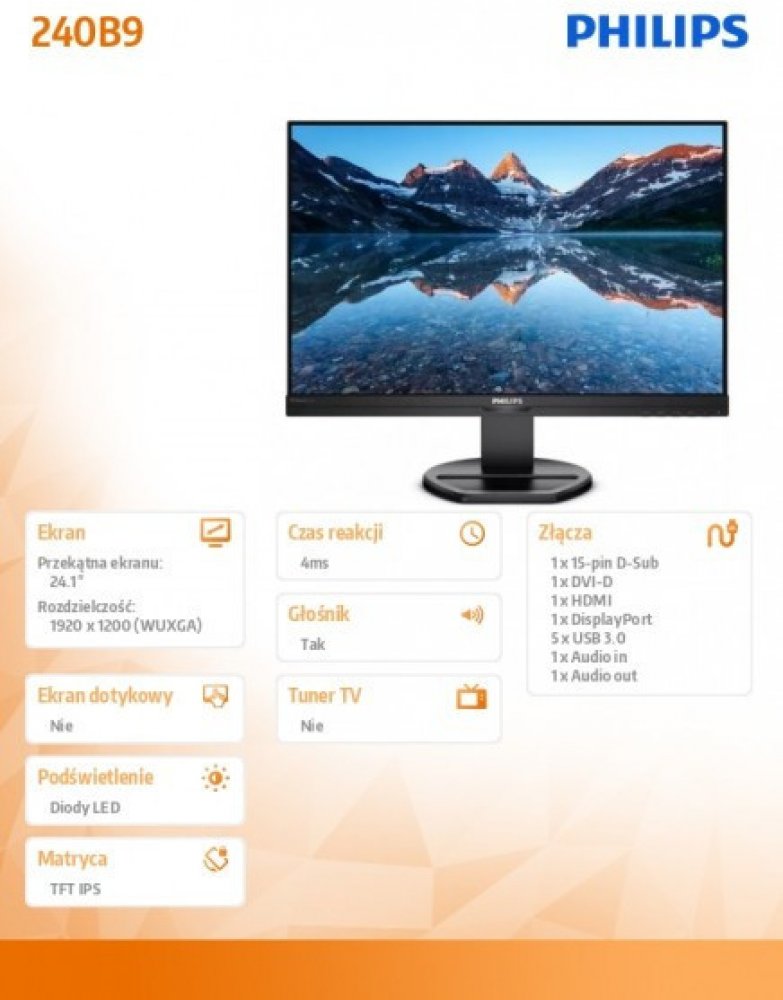 Technologie IPS poskytuje brilantní barvy a široký pozorovací úhel. IPS monitory využívají pokročilou technologii, která poskytuje velmi široký pozorovací úhel 178/178 stupňů, což umožňuje sledovat obraz z téměř jakéhokoli úhlu. tem — i v režimu rotace o 90 stupňů. Na rozdíl od standardních TN panelů nabízejí IPS monitory extrémně výrazný obraz a živé barvy. Díky tomu jsou perfektní nejen pro zobrazování fotografií a filmů nebo procházení internetu, ale také pro nepřetržitou kontrolu v profesionálních aplikacích, které vyžadují přesné podání barev a konstantní jas za všech okolností. SmartErgoBase umožňuje individuální ergonomické přizpůsobení. Základna SmartErgoBase umožňuje ergonomické použití monitoru a vedení kabelů. Možnost nastavení výšky, úhlu natočení a sklonu základny zajišťuje pohodlí při celodenní práci a uvolnění napětí z lásky. Systém vedení kabelů snižuje nepořádek na stole a udržuje jej uklizený. objednat. Méně namáhání očí díky technologii Flicker-free Vzhledem ke způsobu ovládání jasu si u obrazovek s LED podsvícením někteří uživatelé všimnou blikání na svých obrazovkách, což způsobuje únavu zraku. Technologie Philips Flicker-free využívá nové řešení pro korekci jasného a omezení blikání, díky čemuž poskytuje větší pohodlí při sledování. Režim LowBlue vám umožňuje pracovat zdravěji pro oči Výzkum ukázal, že stejně jako ultrafialové paprsky mohou poškodit zrak, krátké modré paprsky vyzařované LED displeji mohou mít negativní dopad na oči a časem přispějí ke zlepšení zraku. zhoršení. Režim LowBlue, vyvinutý společností Philips, speciálně s ohledem na zdraví a pohodu uživatele, snižuje emise škodlivého modrého záření díky použití inteligentního softwaru. HDMI poskytuje univerzální digitálníą łączność Zařízení s konektorem HDMI je vybaveno zařízením potřebným pro příjem vysoce kvalitního signálu přenášeného přes 261; HDMI rozhraní. Pomocí jednoho kabelu HDMI můžete přenášet vysoce kvalitní digitální obraz a zvuk z počítače nebo z libovolného počtu zdrojů audio-video (včetně dekodérů, DVD přehrávačů, AV receiverů a videokamer). PowerSensor snižuje náklady na energii až o 80 % Technologie PowerSensor funguje jako čidlo přítomnosti, které vysílá a přijímá neškodné infračervené signály pro zjištění přítomnosti uživatele v místnosti a automaticky sníží úroveň jasu displeje monitoru, když uživatel opustí stůl. To vám umožní snížit náklady na spotřebu energie až o 80 % a zároveň monitorovat životnost energetického výdaje.