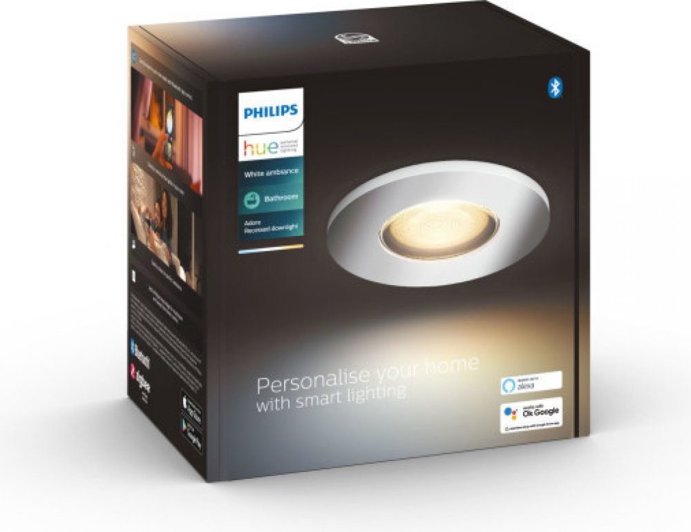 Podhledové svítidlo, včetně LED žárovky GU10, White Ambiance. Vhodné do koupelny, IP44. Ovládání přes aplikaci Hue Bluetooth. Vhodné pro připojení k Hue Bridge. Funguje s Amazon Alexa či Google Assistant. Bílé světlo v širokém spektru odstínů. Možnost stmívání. 4 světelná schémata. Životnost až 15 000 h.