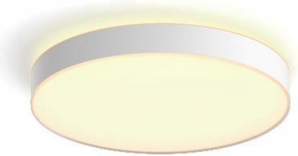 Extra velké stropní světlo Enrave v bílé barvě dokáže osvětlit i velkou místnost a hodí se tak pro obývací pokoje spojené s jídelnou. Vyznačuje se jedinečným efektem – strop nasvěcuje kruhem teplého i studeného bílého světla a směrem dolů vyzařuje silné světlo.