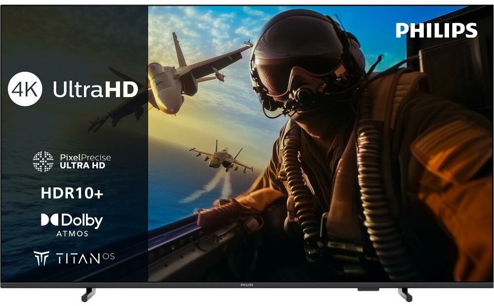 Philips 108 cm LED 43 palců Titan OS 2025 Černá AC kabel, stojan, dálkový ovladač, nástěnný držák 3840 x 2160 16 : 9 50 Hz 60 1.5-2.0m optimální Základní HDR Nejnovější 2024/2025 platforma 4K HDR připravené ke streamování 3 2 3 porty 20 W 75 kWh E 75 kWh 42 kWh G 2266626 Snadná montáž (standardní VESA) 6.29 kg 200 x 100 Vyžaduje 65cm+ nábytek 55,45 x 95,8 x 8,53 cm Dobrý vestavěný zvuk