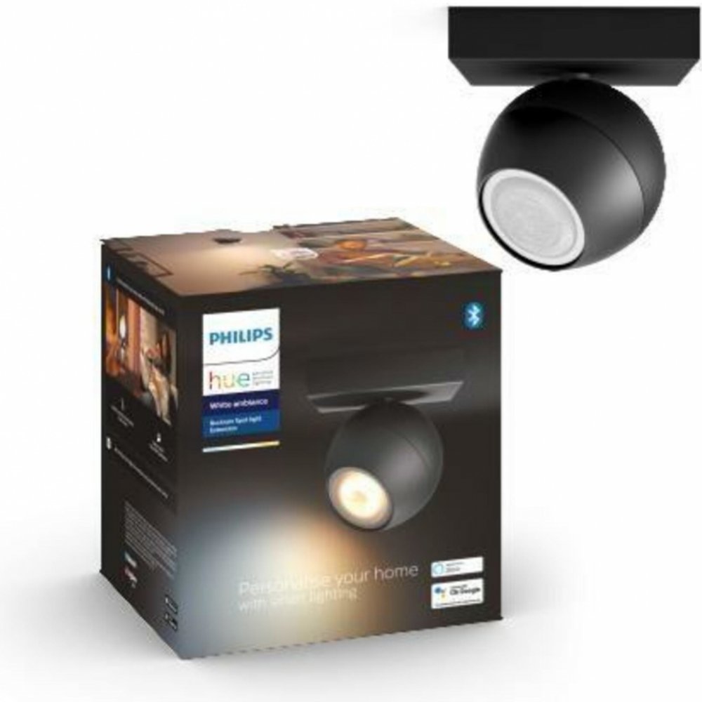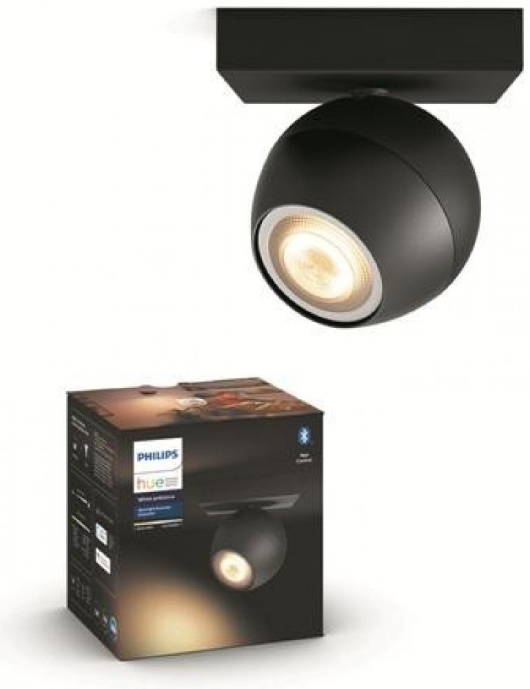 Bodové svítidlo Philips Buckram v černém provedení z kolekce inteligentního osvětlení Philips Hue vkusně osvítí Váš obývací pokoj či ložnici. Jeho hranatá základna a pohyblivé tělo svítidla jsou vyrobeny z kvalitního kovu s matně černou povrchovou úpravou. Kulatý difuzor je krytý plastem a osazen paticí GU10 s maximálním příkonem 1 x 5,5 W. Součástí balení je LED žárovka Hue White Ambiance s příkonem 1 x 5W, svítivostí 350lm a regulovatelnou teplotou chromatičnosti světla od 2200K (teplé žluté světlo) do 6500K (studené bílé světlo) pomocí dálkového ovladače Hue Dimmer Switch (není součástí balení), na který lze spárovat až 10 chytrých světel. Žárovka má 4 přednastavená schémata svícení, dvě v bílé barvě světla Povzbuzující a Soustředění, dvě ve žluté barvě světla Čtení a Relaxační. Výhodou je možnost ovládat svítidlo přes Bluetooth aplikaci ve Vašem mobilním zařízení či tabletu. Krytí IP20 je určeno pro vnitřní použití. Rozměry svítidla jsou 10,3 x 10,2 x 10,2 cm.