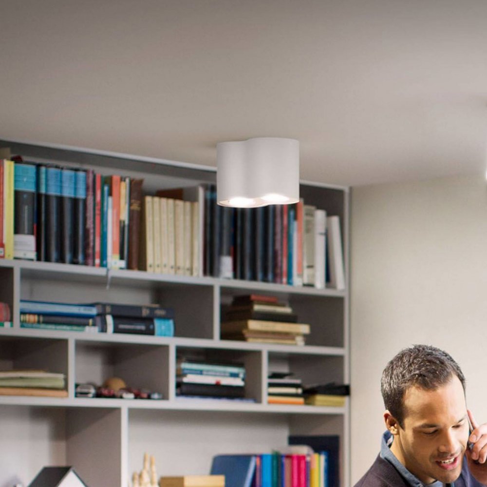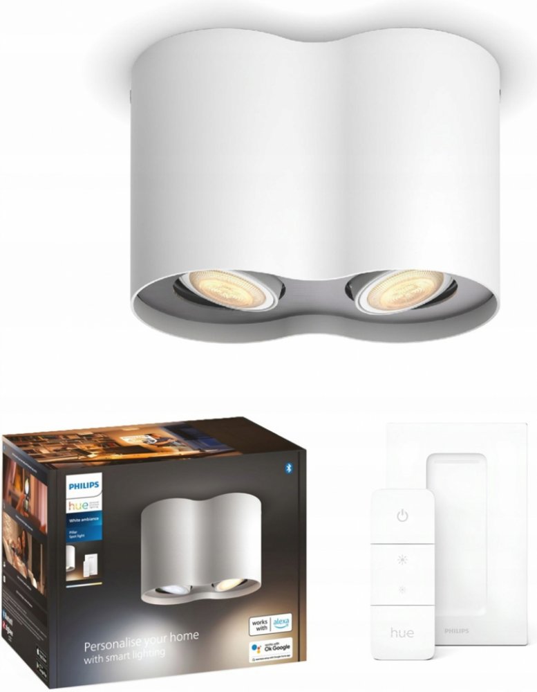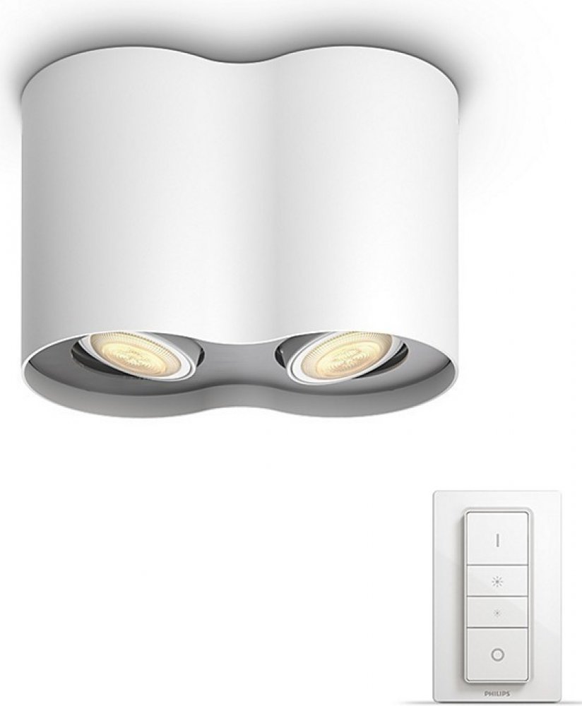 Stropní dvoubodové svítidlo Philips Pillar v bílém provedení je skvělým řešením pro nasvícení Vašeho obývacího pokoje, ložnice či pracovny. Jeho čistý a moderní design se hodí do každého interiéru. Tvarovaná základna a tělo svítidla o rozměrech 12 x 19,3 x 10,3 cm jsou vyrobeny z kvalitního kovu s matně bílou povrchovou úpravou. Dva skleněné difuzory je možné naklápět a jsou osazen paticí GU10 o maximálním příkonu 2 x 5,5 W. Součástí balení jsou dvě LED žárovky Hue White Ambiance se svítivostí 350lm a možností regulace teploty chromatičnosti světla od 2200K (teplé žluté světlo) do 6500K (studené bílé světlo) pomocí dálkového ovladače Hue Switch Dimmer (součástí balení), na který lze spárovat až 10 chytrých světel. Žárovka má 4 přednastavená schémata svícení, dvě ve studené barvě světla Povzbuzující a Soustředění, dvě v teplé barvě světla Čtení a Relaxační. Krytí IP20 je určeno pro vnitřní montáž. Výhodou bodovky je možnost ovládání pomocí Bluetooth aplikace ve Vašim mobilním zařízení či tabletu.