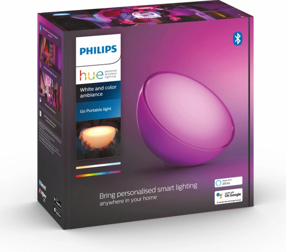 Svítidlo Philips Hue White&Color Ambiance Go je přenosné svítidlo s nastavením chromatičnosti od teplé bílé až po studenou bílou, přednastavených světelných scén, barev a funkcí stmívání. Svítidlo můžete použít samostatně nebo připojit k systému chytrého osvětlení s Philips Hue Bridge. Součástí dodávky je síťový adaptér pro dobíjení. Funkce svítidel dle sérií Philips Hue Philips Hue White je série svítidel, která poskytuje pouze možnost stmívání. Svítidla jsou plně stmívatelná od jasné bílé až po tlumené noční světlo. Série svítidel Philips Hue White Ambiance je rozšířena o možnost nastavení chromatičnosti světla od teplé bílé až po studenou bílou (2200-6500 K) a série Philips Hue White&Color Ambiance nabízí navíc možnost nastavení barev. Svítidla Philips Hue můžete ovládat okamžitě přes Bluetooth (až 10 svítidel) nebo s připojením k systému Philips Hue Bridge (až 50 svítidel a příslušenství) rozšířeného o další možnosti nastavení. Chytrý systém svítidel Philips Hue je kompatibilní s hlasovými asistenty s připojením přes Bluetooth Amazon Alexa a Google Asistent. S využitím systému Philips Hue Bridge je také kompatibilní se systémem Apple HomeKit a Microsoft Cortana. 4 přednastavené světelné scény (Hue White Ambiance a White&Color Ambiance) Udělejte si život jednoduší se 4 přednastavenými světelnými scénami, které byly speciálně navrženy přesně, dle vašich denních aktivit - "dobijte si baterie, soustřeďte se, čtěte nebo relaxujte". Scény "dobijte baterie" a "soustřeďte se" vás revitalizují a podpoří soustředění. S hřejivějšími scénami "čtěte" a "relaxujte" si užijete dobrou knížku nebo naleznete svůj vnitřní klid. Příslušenství pro váš chytrý systém osvětlení Philips Hue S chytrými vypínači ve třech provedeních, zásuvkami a senzory budete mít ještě větší kontrolu nad chytrým osvětlením, ať už uvnitř nebo venku. Bezdrátové vypínače Philips Hue Vyberte si ze tří různých provedení vypínačů Philips Hue - Dimmer Switch, Smart Button nebo Tap Dial. Všechny vypínače můžete připevnit na stěnu, díky magnetu na lednici nebo využít jako dálkové ovládání. Chytrá zásuvka Philips Hue Smart Plug S tímto malým nenápadným příslušenstvím změníte i obyčejné svítidlo na chytré svítidlo. Svítidla můžete ovládat okamžitě pomocí Bluetooth nebo pomocí aplikace s připojení k systému Hue Bridge. Pohybový senzor Philips Hue Motion - nutno spárovat s Philips Hue Bridge Zapněte své chytré osvětlení pohybem. Pohybový senzor Philips Hue Motion na baterie můžete připevnit kdekoli v domácnosti. Stěnový modul Philips Hue Wall Switch - nutno spárovat s Philips Hue Bridge Stěnový modul Philips Hue Wall Switch vám umožní ovládat chytré osvětlení v domácnosti pomocí stávajících klasických vypínačů. Modul se instaluje pod vypínač. Funguje bezdrátově a nabíjí ho jedna baterie CR2032 (součástí balení). Kompletní funkce Smart svítidel s Philips Hue Bridge Philips Hue Bridge je srdcem systému Smart svítidel Philips Hue. Jednoduše jej zapojíte do zásuvky a WLAN routru, spárujete s aplikací Philips Hue, kterou si stáhnete do telefonu na App Store nebo Google Play Store a můžete tak ovládat až 50 svítidel a příslušenství ve své domácnosti pomocí aplikace Philips Hue, ať už jste doma, v práci nebo na dovolené. Philips Hue Bridge funguje jako inteligentní hub, který spojuje všechna vaše zařízení chytrého osvětlení. Nastavit můžete stmívání, změnu chromatičnosti a barev a pomocí časovače si také jednoduše nastavíte osvětlení podle svých denních návyků, například když vstáváte nebo jdete spát. Vybrat si můžete i z dalších přednastavených světelných scén. Philips Hue Bridge je kompatibilní se systémy Amazon Alexa, Google Assistant, Apple HomeKit a Microsoft Cortana. Jednoduché hlasové příkazy vám umožní kontrolovat jedno nebo několik světel najednou.