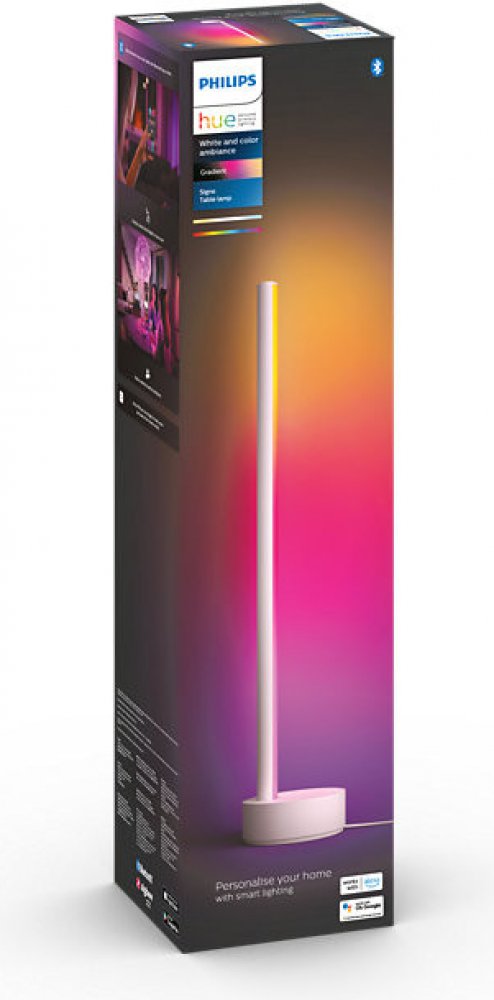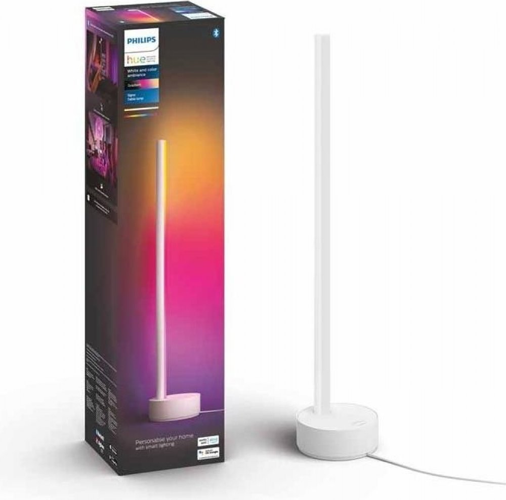 Pro kompletní nabídku funkcí je nutné přikoupit můstek Hue Bridge, který není součástí balení! Stolní lampa Signe z kolekce chytrého osvětlení značky Philips se stane skvělým společníkem při večerním odpočinku a to díky integrovanému LED zdroji Hue White and Color Ambiance, který dokáže navodit tu správnou atmosféru ve Vaší domácnosti. Můžete volit mezi 16 miliony barev a regulovat teplotu chromatičnosti světla od 2000K (teplé žluté světlo) do 6500K (studené bílé světlo). Svítidlo je kompatibilní s hlasovými asistenty Apple HomeKit, Google Assistant, Amazon Alexa. Lze jej ovládat bezprostředně pomocí Bluetooth aplikace ve Vašem chytrém zařízení, nebo přes Philips Hue Bridge můstek, který není dodáván se svítidlem. Získáte tak celou řadu funkcí. Integrovaný zdroj o příkonu 12 W dosahuje svítivosti až 1040 lm. Výhodou je dlouhá doba životnosti až 25 000 hodin. Kvůli nižšímu krytí IP20 není vhodná do místností s výskytem vyšší vlhkosti vzduchu. Lampa je vyrobena z odolného hliníku s bílou povrchovou úpravou. Je určena k napájení ze sítě na 100-240V. Délka přívodního kabelu činí 2 metry. Celkové rozměry činí 55,3 x 11,1 x 11,1 cm. Vztahuje se na ni záruka 2 roky. Philips HUE Gradient Signe je nádherný designový kousek svítidla, které je velmi inteligentní. Umí nastavit až 16 milionů barev, umí se plynule stmívat a dokáže v interiéru navodit tu správnou atmosféru. Technické parametry: -integrovaný LED zdroj Hue White and Color Ambiance s Bluetooth technologií -příkon 12 W -svítivosti až 1040 lm -nastavení teploty chromatičnosti světla od 2000K (teplé žluté světlo) do 6500K (studené bílé světlo) -možnost volby mezi 16 miliony barev -záruka 2 roky -celkové rozměry činí: výška 55,3 cm, šířka 11,1 cm a délka 11,1 cm -krytí IP20 - není vhodné do místností s výskytem vyšší vlhkosti vzduchu -dlouhá doba životnosti až 25 000 hodin -součástí balení je napájecí jednotka k připojení do sítě na 100 V - 240 V, 50 - 60 Hz -kompatibilita s Apple HomeKit, Google Assistant a Amazon Alexa -bezprostřední možnost ovládání pomocí Bluetooth aplikace v chytrém zařízení - lze ovládat až 10 světel v jedné místnosti najednou Charakteristika inteligentního osvětlení Philips Hue : LED jako zdroj světla u všech Hue svítidel 90% úspora elektrické energie oproti klasickým zdrojům svítidla jsou ovládaná pomocí zdarma stahovatelné aplikace na APP Store a Google play řízení pomocí Wi-fi sítě Vašeho mobilu či tabletu z jakéhokoliv místa ma světě vzájemné spojení až 50 svítidel či žárovek do jednoho inteligentního systému pomocí jednoho Bridge a aplikace vzájemná kompatibilita žárovek Hue s Vašimi stávajícími svítidly - žárovky Hue můžete namontovat do Vašich starých světel. více než 280 rozšíření Hue aplikací v případě nutnosti možnost ovládání Hue svítidel vypínačem, který není součástí balení