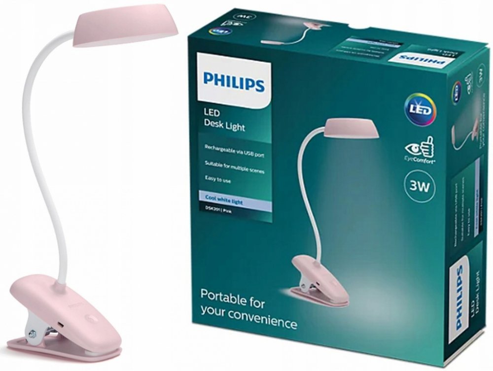 Stolní lampa Philips se postará o vhodné podmínky pro čtení vaší oblíbené knihy, při studiu nebo práci u PC. Stolní lampa má integrované LED, a tak šetří vaše oči a zároveň je energeticky úspornější než běžné žárovky. Barevná teplota světla, kterou lampa vyzařuje, je teplá bílá. Teplá bílá barva osciluje mezi odstíny žluté až oranžové barvy a připomíná barvu svíčky, ohně či západu nebo východu slunce. Klíčové vlastnosti produktu Philips Donutclip LED stolní lampa Philips umožní číst, studovat nebo pracovat na počítači v optimálních podmínkách Jako zdroj osvětlení stolní lampy slouží LED žárovka Poskytne světlo s chromatičností 4000 K Barevná teplota světla, kterou lampa vyzařuje, je teplá bílá Nabídne vám světelný tok 175 lm Hodnota indexu podání barev neboli věrnost podání barev (CRI) má hodnotu 90 Ra ze 100 možných Vyhovuje stupni krytí IP20 Dodejte svému prostoru světlo se stolní lampou Philips Stolní lampička Philips vám bude vždy spolehlivě sloužit. Lampa má stupeň krytí IP20, což znamená, že odolává...