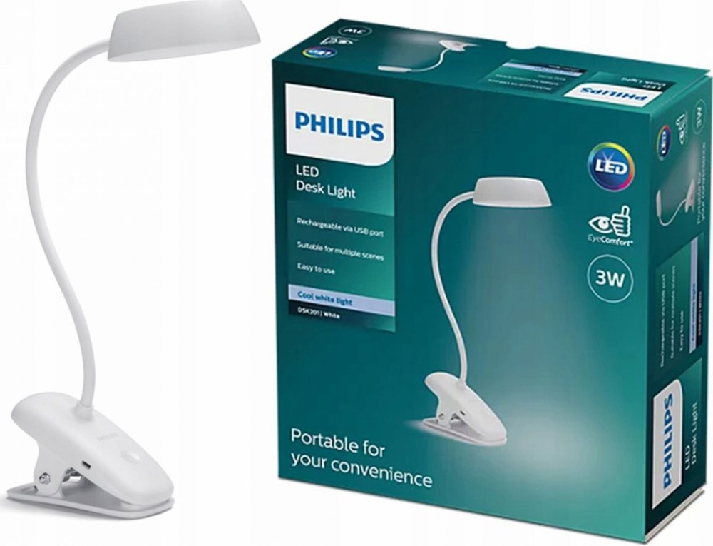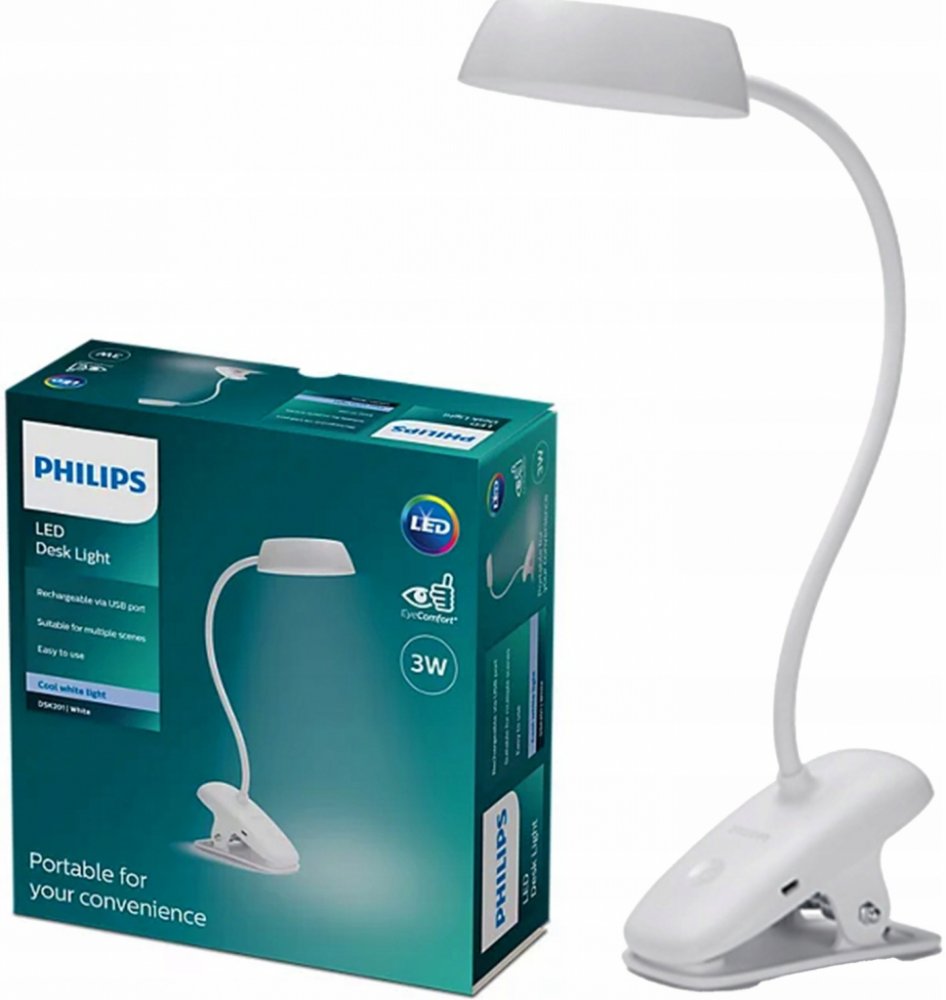 Philips 8719514396890 Donutclip stolní dotyková klipsová lampička s lupou LED 3W/175lm 4000K USB bílá stmívatelná Interiérová svítidla | Lampy, lampičky | Stolní lampy 8719514396890 biela neutrální bílé světlo (4000K) plast