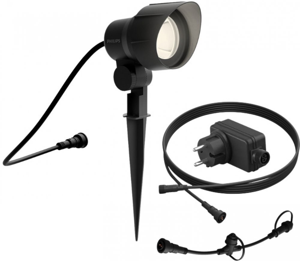 Philips 8719514477216 GardenLink Low Volt Spotlight Starter pack - nízkonapěťové exteriérové svítidlo/reflektor LED 6W/600lm 2700K černá /konektor/adaptér/kabel 5m Venkovní osvětlení | Nízkonapěťové zahradní osvětlení 8719514477216 čierna teplé svetlo (2700K) hliník, sklo