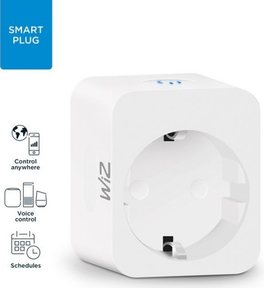 Inteligentní zásuvka bez uzemňovacího kolíku WiZ Smart Plug od společnosti Philips udělá jakoukoliv zásuvku inteligentní. Zásuvka WiZ obsahuje powermetr, díky kterému můžete měřit spotřebu elektrické energie.Jednoduše vložte zástrčku do standardní zásuvky a připojte zařízení dle vašeho výběru a ovládejte běžné lampy, dekorativní světla, ventilátory, kávovar a další zařízení, které potřebují jen napájení, aby fungovaly.Následně zařízení můžete ovládat na dálku hlasem nebo pomocí inteligentní aplikace Wiz, kterou lze snadno stáhnout do libovolného mobilního zařízení. Připojit se k ní dá přes Wi-Fi připojení s minimálním pokrytím 2,4 HGz. Podporuje hlasových asistentů Amazon Alexa, Google Assistant a Siri.Naplánujte si, aby se zařízení zapínalo/vypínalo tak, aby vyhovovalo vaší každodenní rutině a šetřilo energii a peníze. Už se nikdy nebudete muset starat o to, zda jste nechali své světla nebo spotřebiče doma zapnuté, protože je můžete zkontrolovat pomocí smartphonu.Zásuvka Wiz Smart Plug je vyrobena z bílého plastu. S ochranou IP20 je určená do interiérů.Bluetooth slouží pouze k párování s aplikací.
