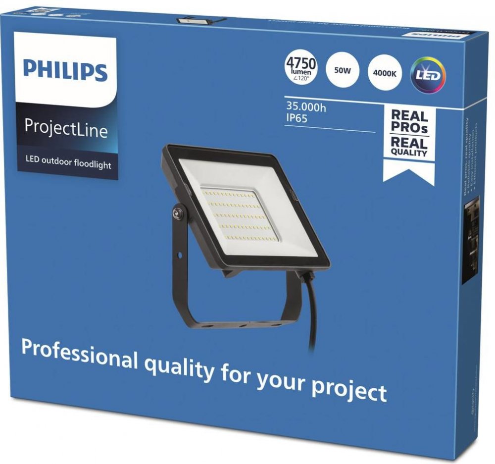 Robustní LED reflektor ProjectLine Floodlight je vybaven účinnými LED diodami a poskytuje rovnoměrné venkovní osvětlení na velké ploše. Tělo je vyrobeno z kovu a je obzvláště odolné díky stupni krytí IP65 a odolnosti proti nárazu IK06, takže ho neovlivní ani okolní teploty od -40 do 50 °C. - Stupeň krytí: IP65- Stupeň odolnosti proti nárazu: IK06- Index podání barev (CRI): 80- Úhel vyzařování: 110...