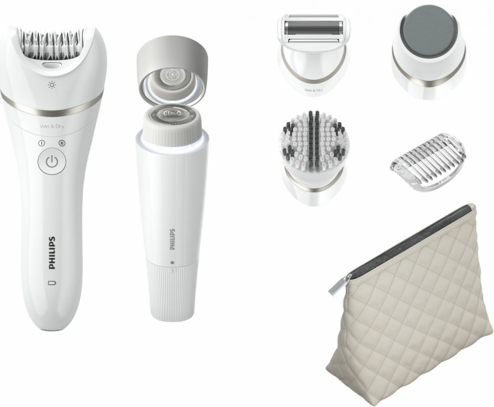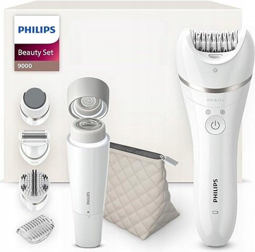 Luxusní sada Philips Beauty Set Series 9000 nabízí kompletní péči pro hladkou pokožku od hlavy až k patě. Mezi šesti nástroji najdete i odstraňovač chloupků na obličeji a univerzální nástavce. Požitek pro vaši pokožku, obličej, tělo i nohy.