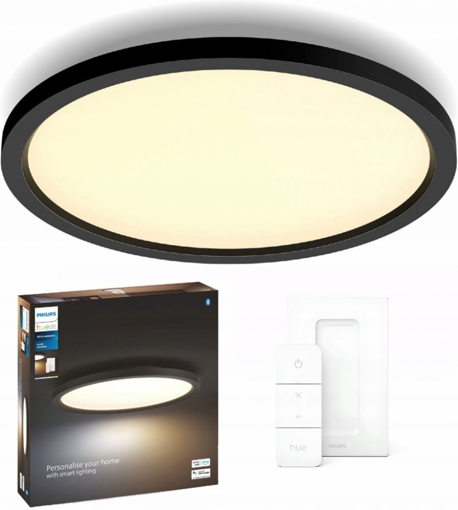 LED světlo Philips Hue WA Aurelle, 39,5 cm černé + ovladač Hue Dimmer SwitchPhilips Hue WA Aurelle je moderní chytrý LED panel s elegantním černým rámem a kulatým designem, který se skvěle hodí do každého interiéru. Díky rozměrům 39,5 cm a světelnému toku až 2450 lm poskytne silné osvětlení celé místnosti. Svítidlo je vybaveno technologií Hue White Ambiance, která umožňuje nastavit teplotu bílého světla od teplých 2200 K až po studených 6500 K. Součástí balení je dálkový ovladač Hue Dimmer Switch, s nímž jednoduše upravíte jas i barvu světla a vyberete si některé z přednastavených schémat. Stačí jediné kliknutí a můžete se ponořit do relaxační atmosféry, soustředit se na práci nebo si užít pohodlné čtení. Panel lze ovládat i prostřednictvím aplikace Philips Hue přes Bluetooth a propojit až s 10 chytrými světly v jedné místnosti. Pro plný zážitek doporučuje Philips využít Hue Bridge, který otevírá cestu k hlasovému ovládání, automatizaci a vzdálenému přístupu odkudkoli. ...