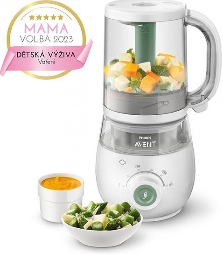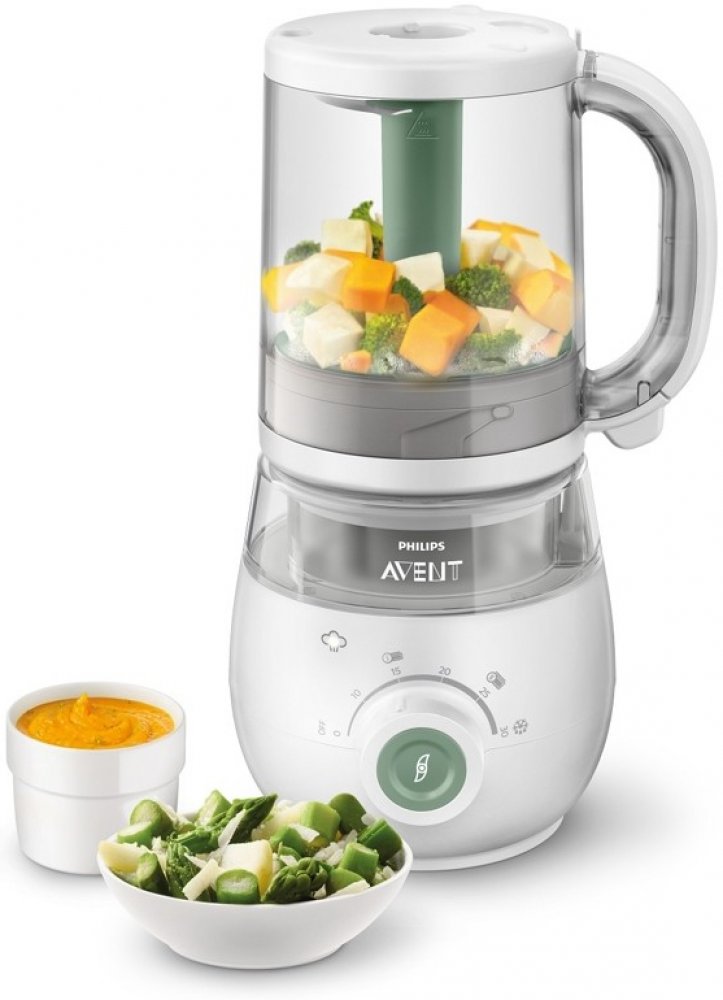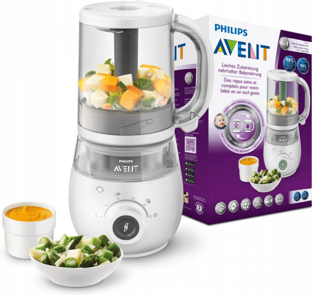 Náš přístroj 4 v 1 pro přípravu zdravé dětské stravy zvládá každý krok procesu mixování od velmi jemně rozmixovaného ovoce a zeleniny přes míchání masových, rybích a luštěninových přísad po vytvoření směsi s malými kousky.