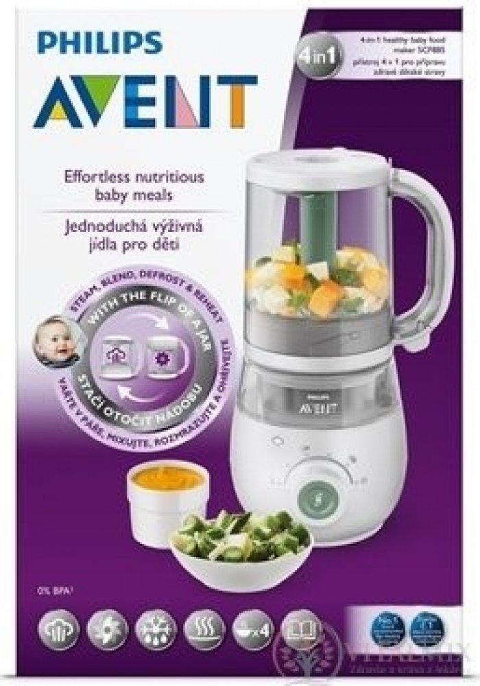 Přístroj pro přípravu zdravé dětské stravy 4 v 1 vám umožní připravit výživná domácí jídla – a vše v jedné nádobě. Stravu můžete podávat ihned nebo ji skladovat v přiložené nádobě a později ohřát, a to díky funkcím ohřevu nebo rozmrazování se snadným použitím.