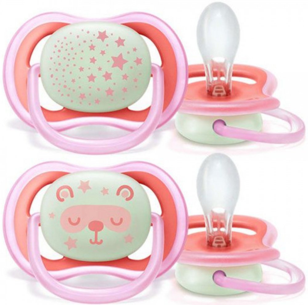 Dudlík Philips Avent Ultra Air disponuje velkými vzduchovými otvory, aby mohla pokožka dítěte kolem pusinky dýchat a nezapařovala se. Je vyroben ze 100% silikonu, takže neobsahuje žádné nebezpečné BPA. Měkoučký silikon a tvar dudlíku se starají o správný vývoj dutiny ústní a simulaci matčina prsu. V balení najdete cestovní krabičku a dva dudlíky. V krabičce je mimojiné také možné sterilizovat dudlíky v mikrovlnce. Za 3 minuty máte dudlíky opět hygienicky čistý. Středová část dudlíku v noci svítí, takže se dobře hledá, když vypadne dítěti z pusy.