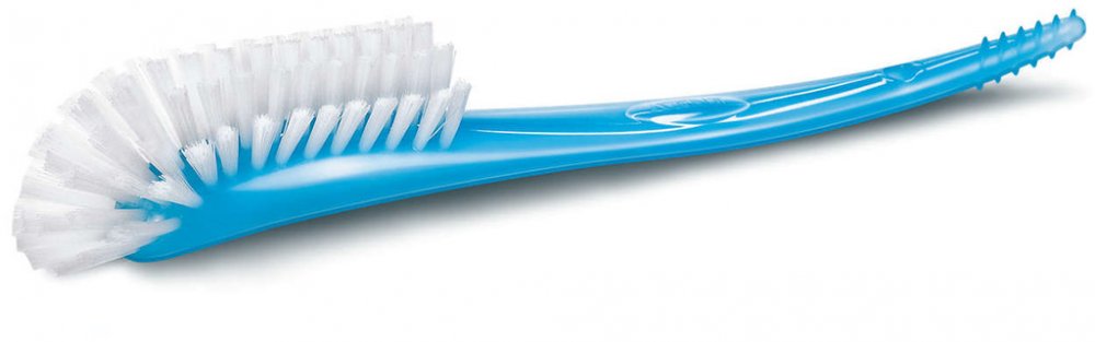 Avent kartáč má speciálně zakřivenou rukojeť pro pohodlné držení a tvarovaný předek umožňuje vyčistit a málo dostupná místa v lahvičkách a hrnečkách. Na rukojeti je rýhovaný konec pro čištění saviček a dudlíků.