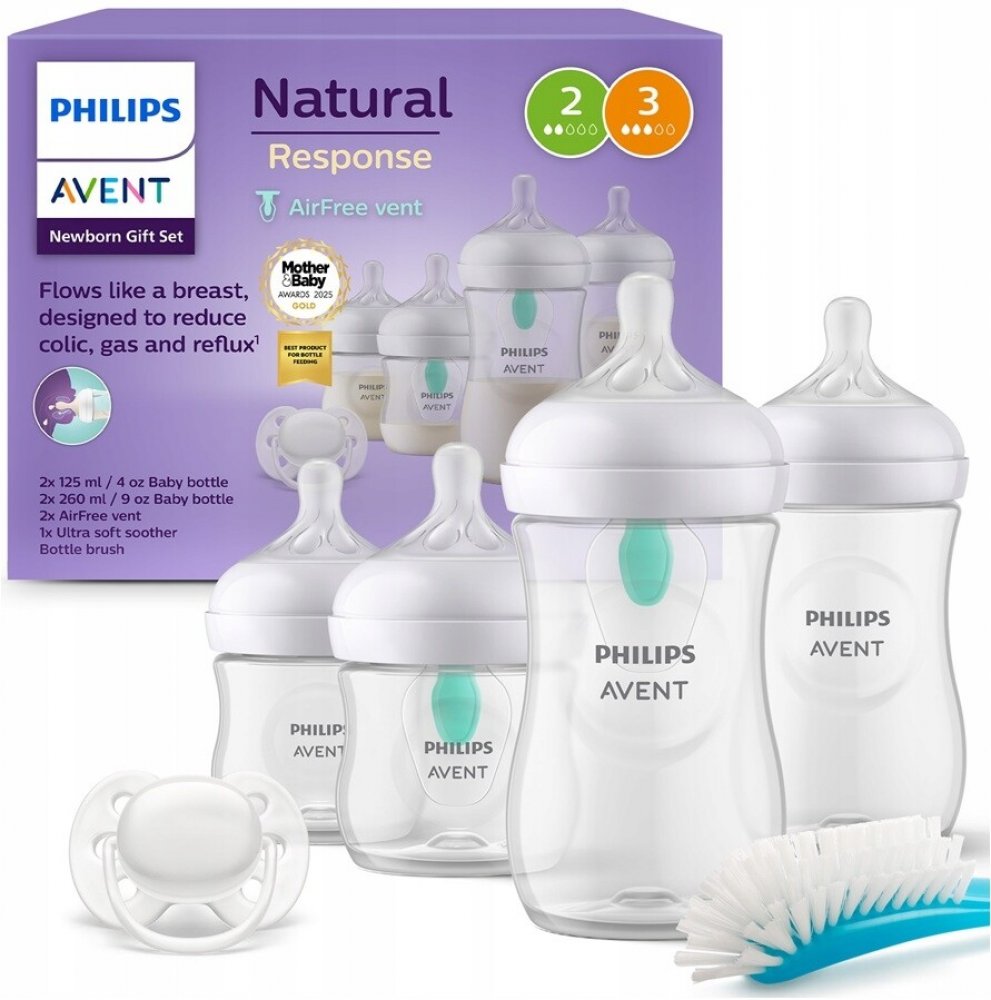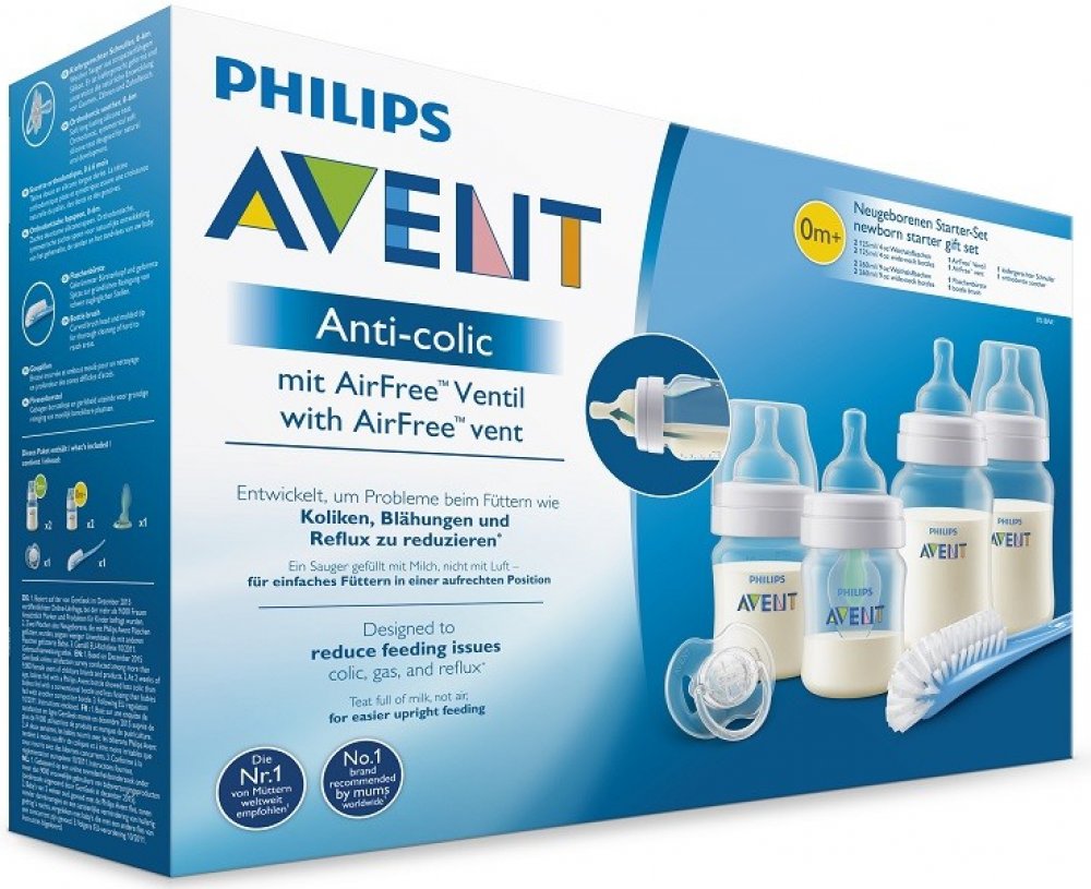 Velmi oblíbená kojenecká startovací sada Avent ventil AirFree. Charakteristika:Ventil AirFree- ventil odvádí vzduch do bublinové komory- drží dudlík plný mléka, v dudlíku není vzduch- naplněný dudlík umožňuje krmení ve vzpřímené poloze, přičemž láhev je držena vodorovně- intuitivní složení a snadné čištění- láhev je možné používat s ventilem i bez něho- kompatibilní se všemi lahvemi Classic + a Anti-colic- lahvička s extra měkkým dudlíkem Airflex s pomalým průtokem ( 1 otvor)- vzduchové bubliny jsou přesměrovány do bublinové komory - mléko je viditelně zcela bez bublin- intuitívne složení a snadné čištění a dezinfekce bez dalších nástrojů- láhev se může používat s ventilem nebo bez- BPA free- určeno pro děti od 0m+Obsah balení: - 2ks láhve AVENT Anti-colic (125 ml) s extra měkkými novorozeneckými dudlíky- 2ks láhve AVENT Anti-colic (260 ml) s extra měkkými dudlíky s pomalým průtokem- 1ks Novorozenecké šidítko (0-6 měsíců, průhledné)- 1ks Kartáč na láhve a dudlíky- 1ks AirFree ventil