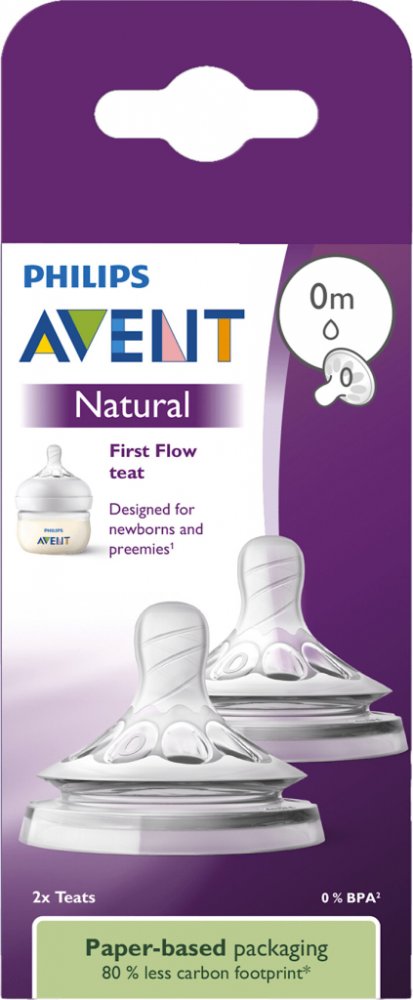 Savička Philips AVENT Natural, 2 ksPrvní savička pro novorozence a jemné sáníPodpořte přirozené sání svého miminka již od prvního dne díky savičce, která svým širokým provedením věrně napodobuje prs a umožňuje tak naprosto plynulé kombinování kojení s krmením z lahve. Tento inovativní model s jediným otvorem a mírným průtokem je navržen speciálně pro novorozence, předčasně narozené děti a všechna miminka, která sají velmi jemně, přičemž unikátní konstrukce uvolňuje mléko pouze při aktivním pití, čímž předchází nežádoucímu odkapávání a potřísnění. Integrovaný antikolikový ventil navíc účinně brání polykání vzduchu a výrazně snižuje riziko bolavého bříška, aby se Vaše děťátko mohlo krmit v naprostém klidu a přesně podle svého vlastního tempa. V praktickém balení navíc naleznete hned dva kusy saviček. Savička "první průtok" pro jemně sající děti Přirozené přisátí díky savičce ve tvaru prsu...