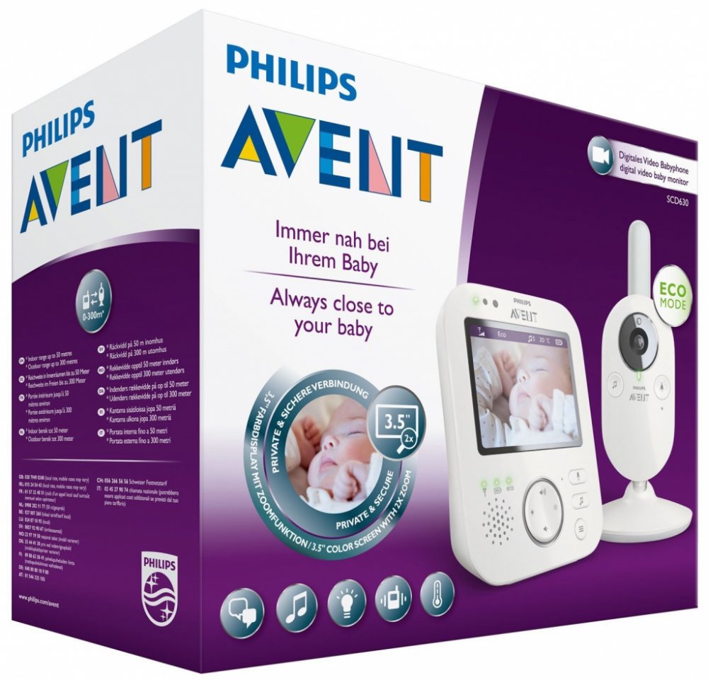Zařízení Philips Avent SCD630 umožňuje neustálý kontakt s dítětem – bezpečně a důvěrně. Své dítě uslyšíte v dokonalé zvukové kvalitě a rovněž ho uvidíte díky křišťálově čistému obrazu (LCD displej o velikosti 3,5"), ve dne i v noci.