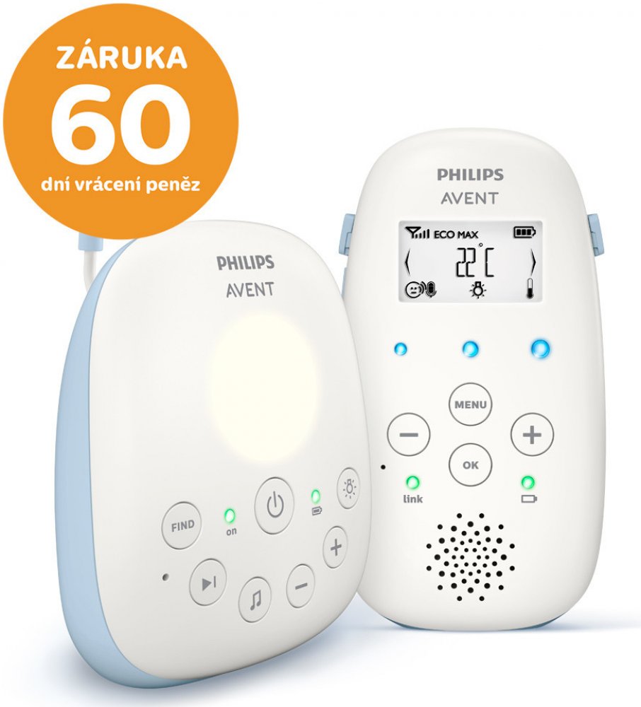 S novou řadou monitorů DECT Philips AVENT můžete v klidu odpočívat s vědomím, že je vaše dítě spokojené, i když s ním nejste v místnosti.