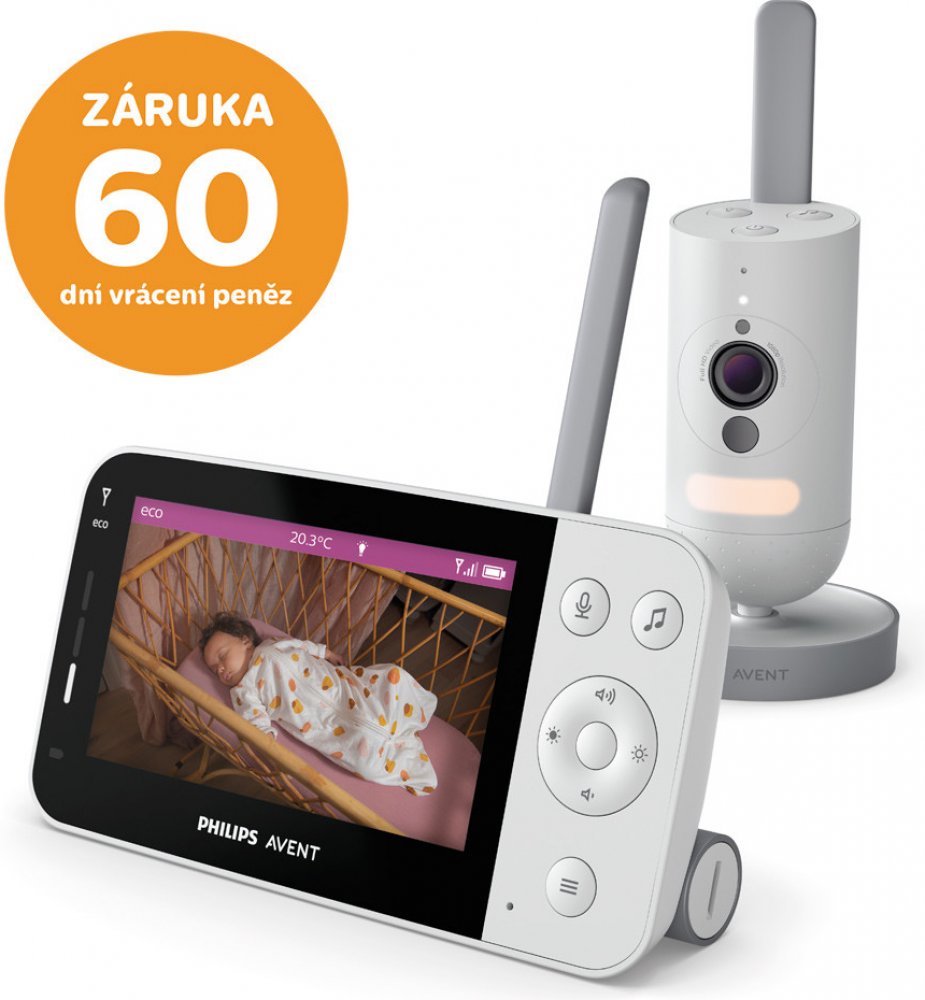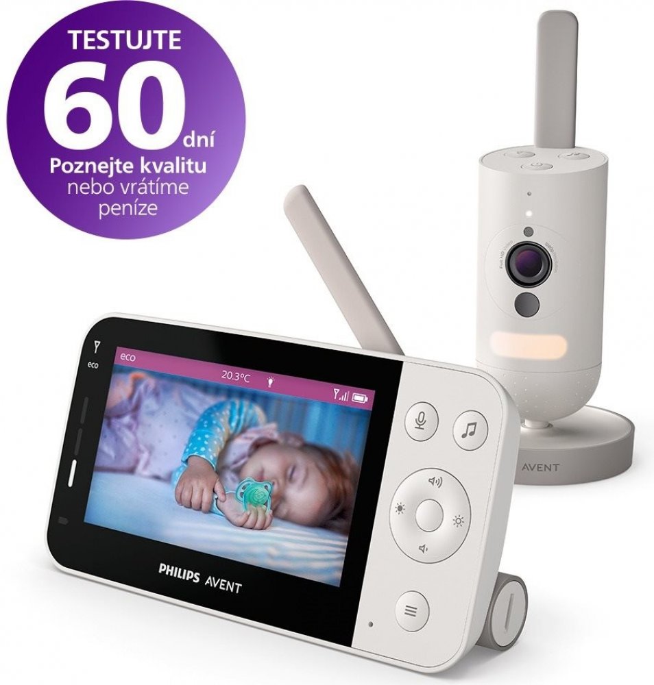Navrženo tak, abyste byli neustále ve spojení s dítětem. Full HD kamera s nočním viděním a digitálním zvětšením.