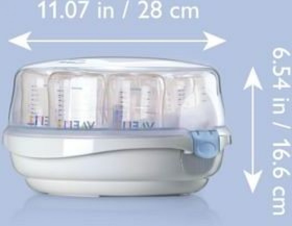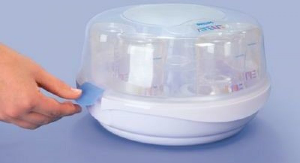 Parní sterilizátor do mikrovlnné trouby může být použit ke sterilizaci dětských lahví a jiných výrobků během pouhých 2 minut, přičemž zničí 99,9 % bakterií a mikrobů. Přesná délka procesu samozřejmě závisí na výkonu mikrovlnné trouby. 2 minuty při výkonu 1200–1850 W, 4 minuty při výkonu 850–1100 W, 6 minut při výkonu 500–800 W.