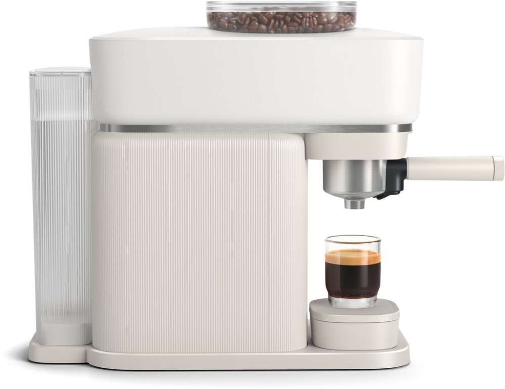 Pákový kávovar, espresso, tlak 16 bar, zásobník na vodu 1,2 l, zásobník na kávová zrna 170 g, keramický mlýnek, nastavení síly kávy, použití mleté kávy, nápoje Espresso a Lungo, maximální výška šálku 135 mm