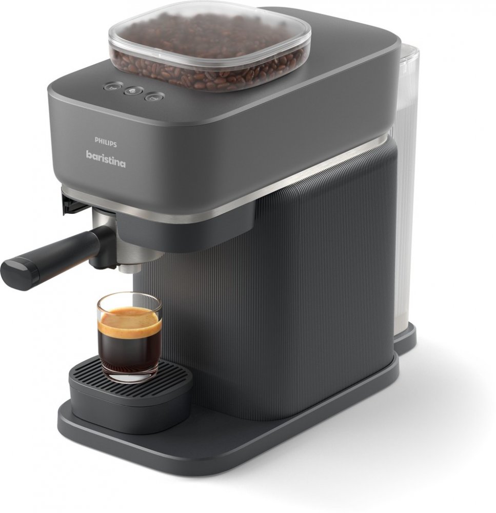 Kávovar s mlýnkem Baristina automaticky namele zrna, poskytuje super svěží aroma a dokonale vyšlehá kávu v portafiltru. Čerpadlo s tlakem 16 barů uvolňuje plnou chuť z vašich zrn.
