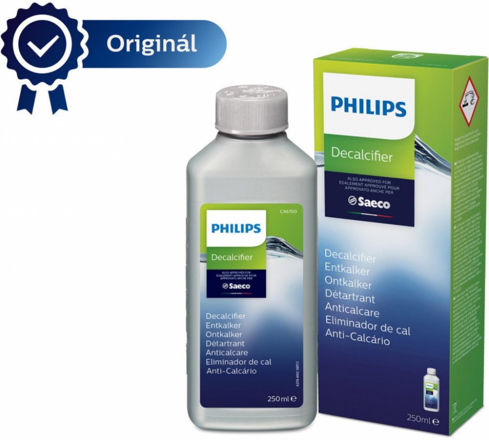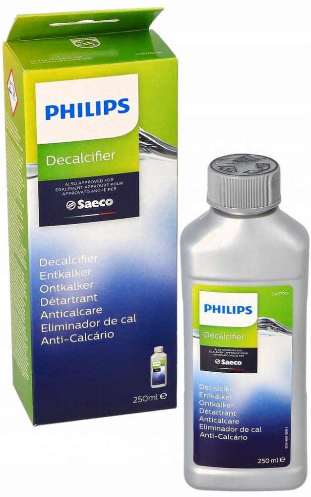 Přípravek Philips na odstranění vodního kamene vyčistí veškeré vodní okruhy espresovače.