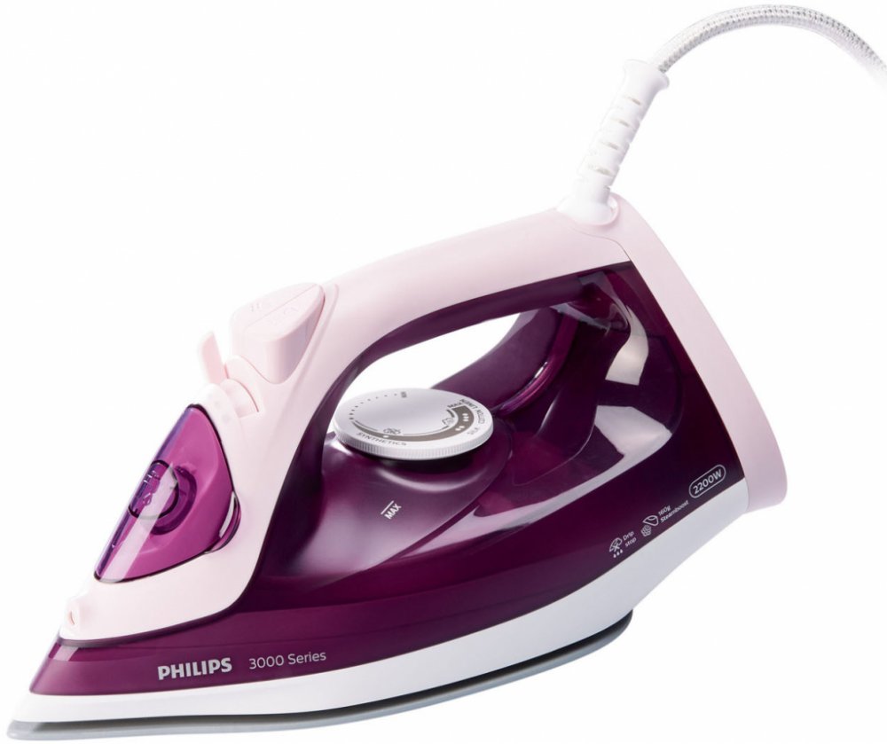Napařovací žehlička 3000 Series vám usnadní žehlení díky silnému parnímu rázu, který si poradí s každým záhybem. Keramická žehlicí plocha zajistí skvělé klouzání a s nádržkou na vodu o objemu 300 ml zvládnete vyžehlit menší várku prádla bez doplňování.