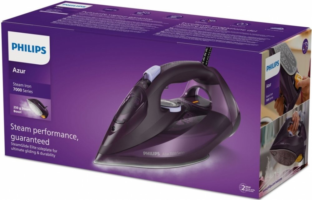 2800 W 250 g/min 50 g/min se snadnou údržbou do 30 minut 300 ml Philips SteamGlide Elite napařovací 50 g/min. s manuální regulací pro pravidelné použití 2.0 m 1.9 kg plně automatické