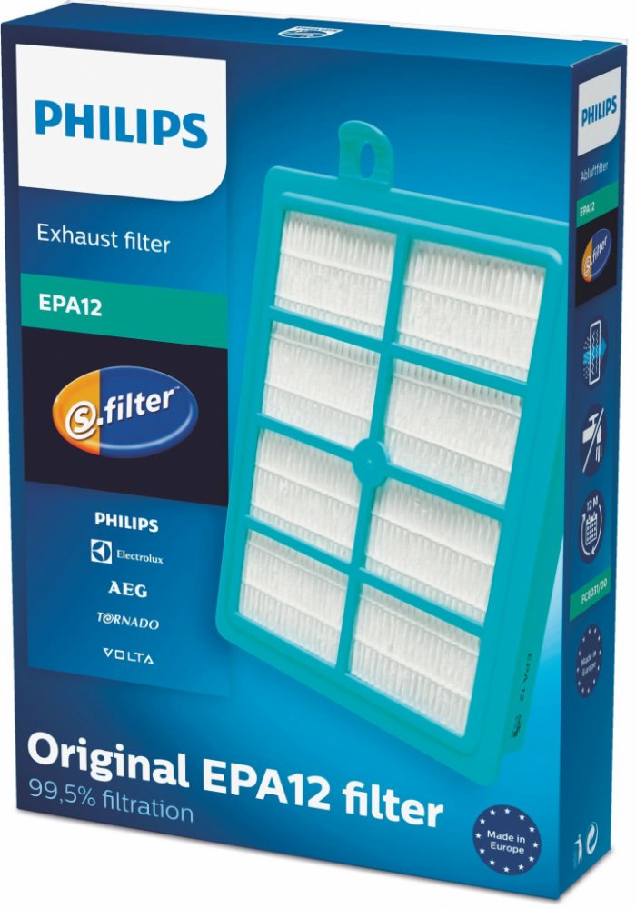 Filtr Philips EPA12 pro váš vysavač zachytí 99,95 % nejjemnějšího prachu a zajistí vám bezprašné prostředí. Optimálního výkonu dosáhnete každoroční výměnou filtru.