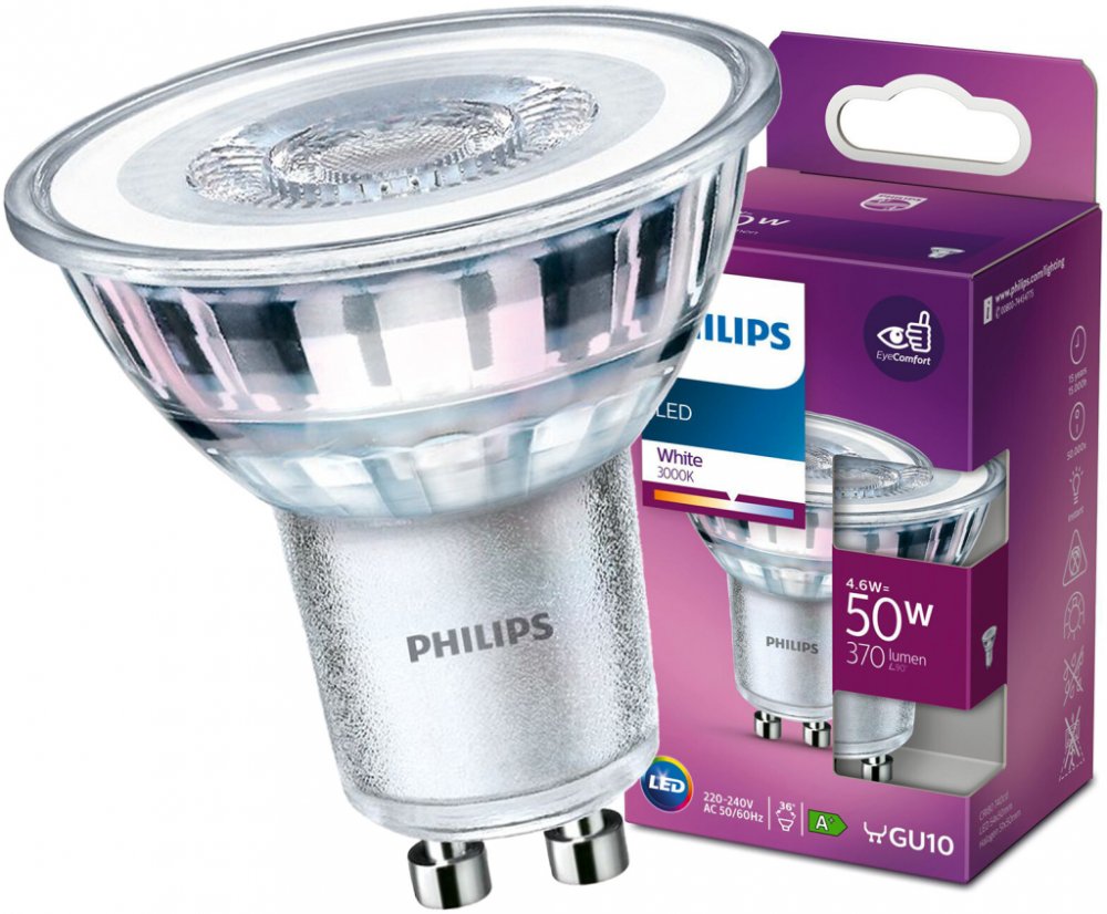 LED žárovka od renomované a v osvětlovacím průmyslu uznávané firmy PHILIPS s paticí GU10 a výkonem 4,6W . Bodové svítidlo je ideální pro akcentační osvětlení a celkové osvětlení. Lze jej namontovat do krabic pod omítku i do svítidel s jinými reflektory. Žárovka je vyrobena pomocí moderních řešení využívajících inovativní LED technologii, která se vyznačují vysokou účinností světelných parametrů, věrnou reprodukcí barev osvětlovaných předmětů a výjimečně dlouhou životností .